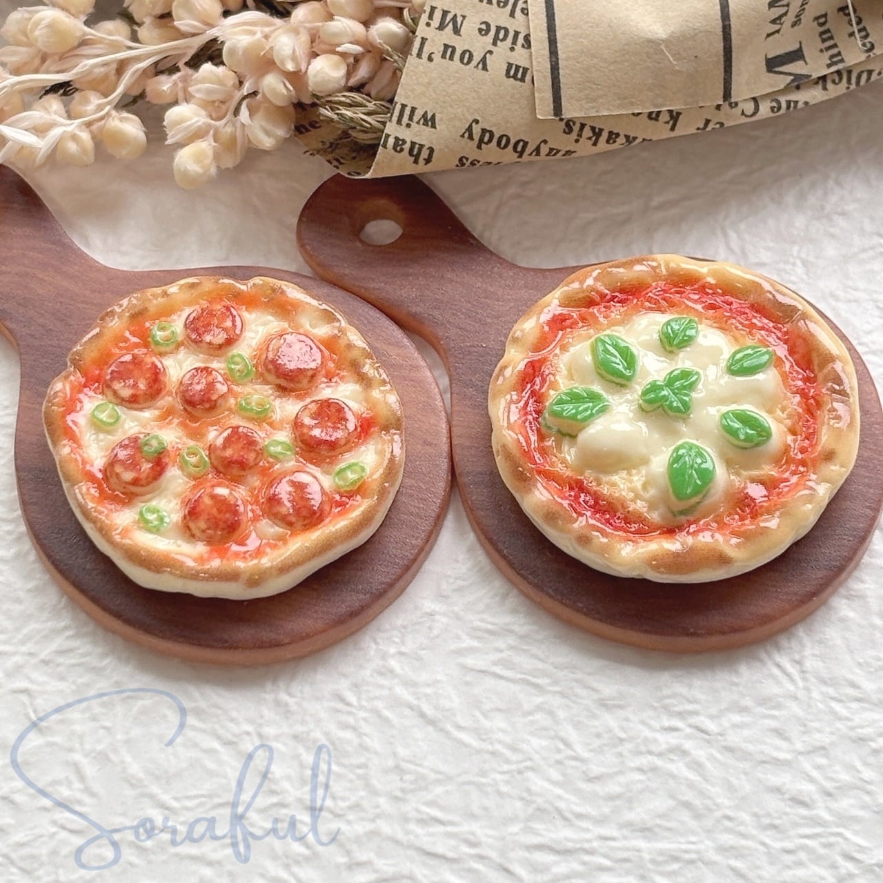 【セット】リアルなピザとピザボードのセット Pizza ピッツア マルゲリータ ペパロニ デコパーツ【ミニチュア】D-0758