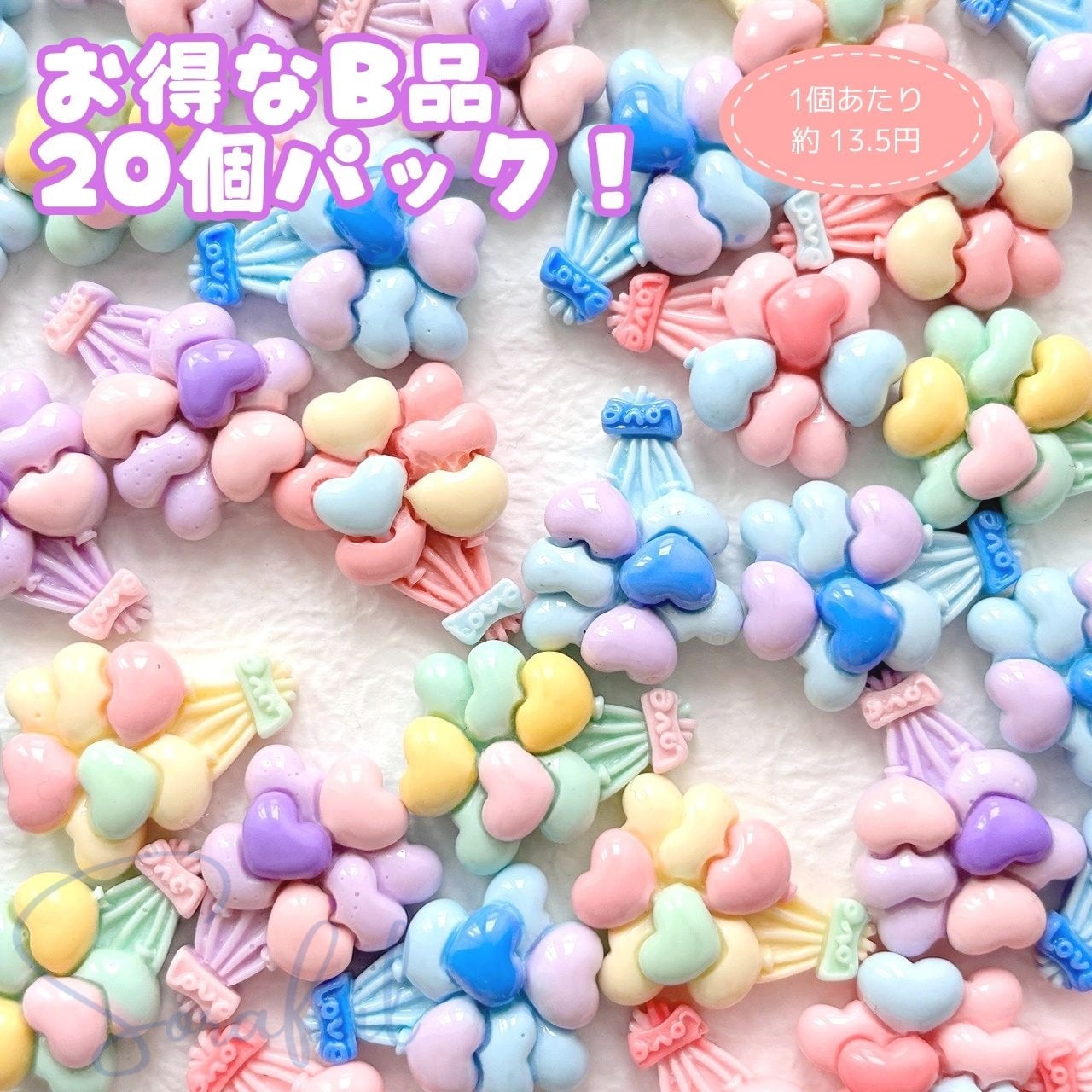 【B品】【訳あり】カラフルハートバルーン 20個セット【デコパーツ】BPAK-D-0180