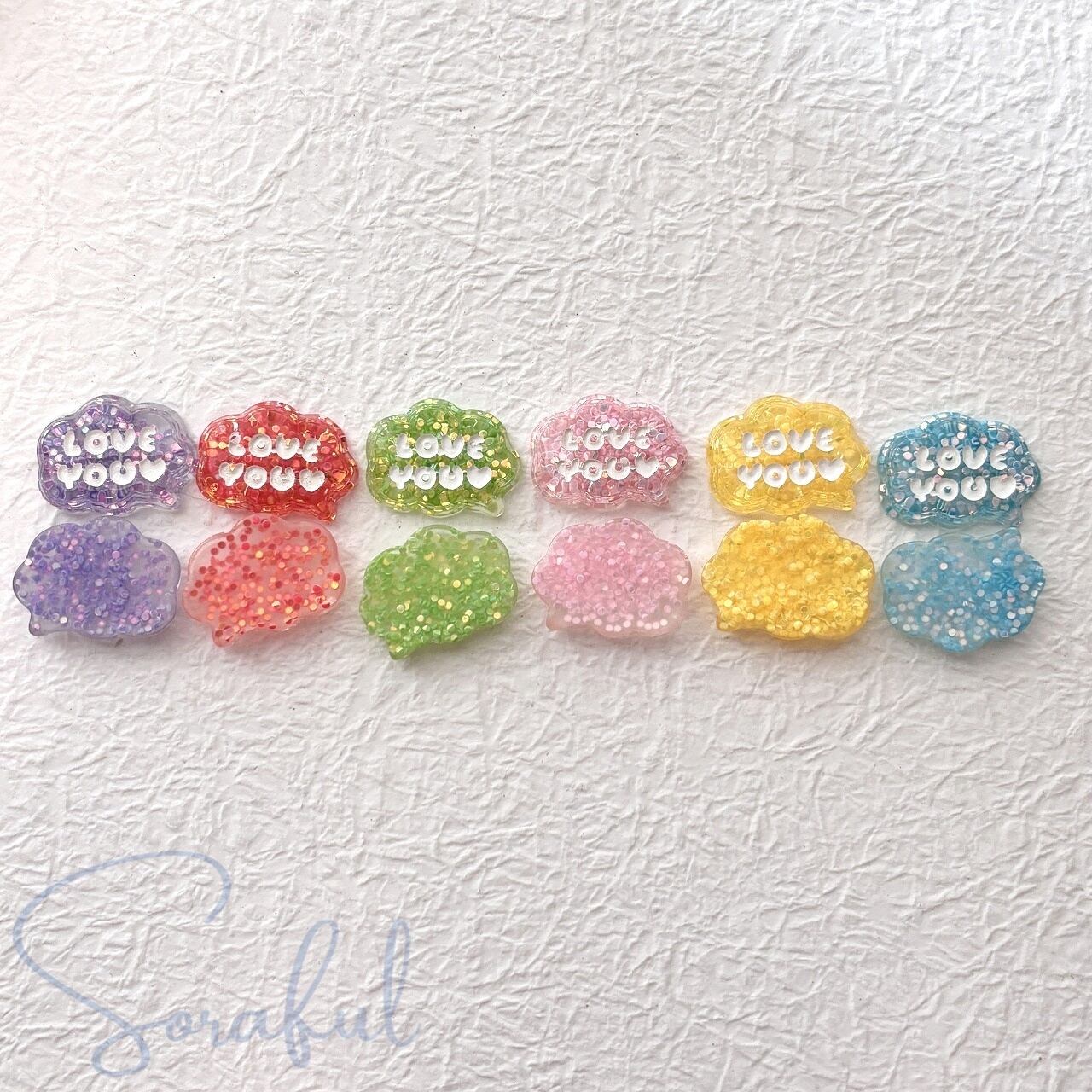 【6色セット】LOVE YOU 吹き出し ラメ キラキラ 文字プレート【デコパーツ】D-0546-ALL