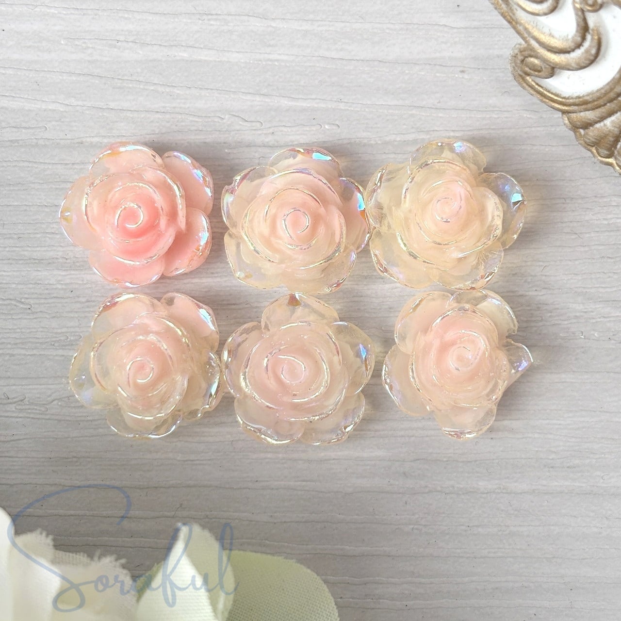 【6個】薔薇 バラ カボション クリア 透明 縁 ホロ 16mm【デコパーツ】D-0135