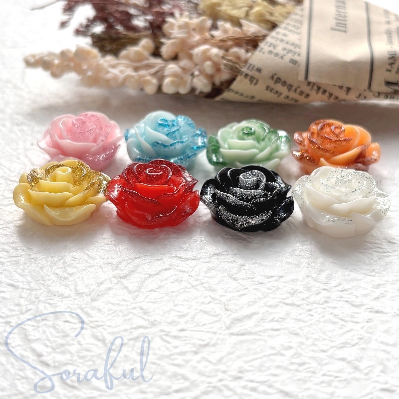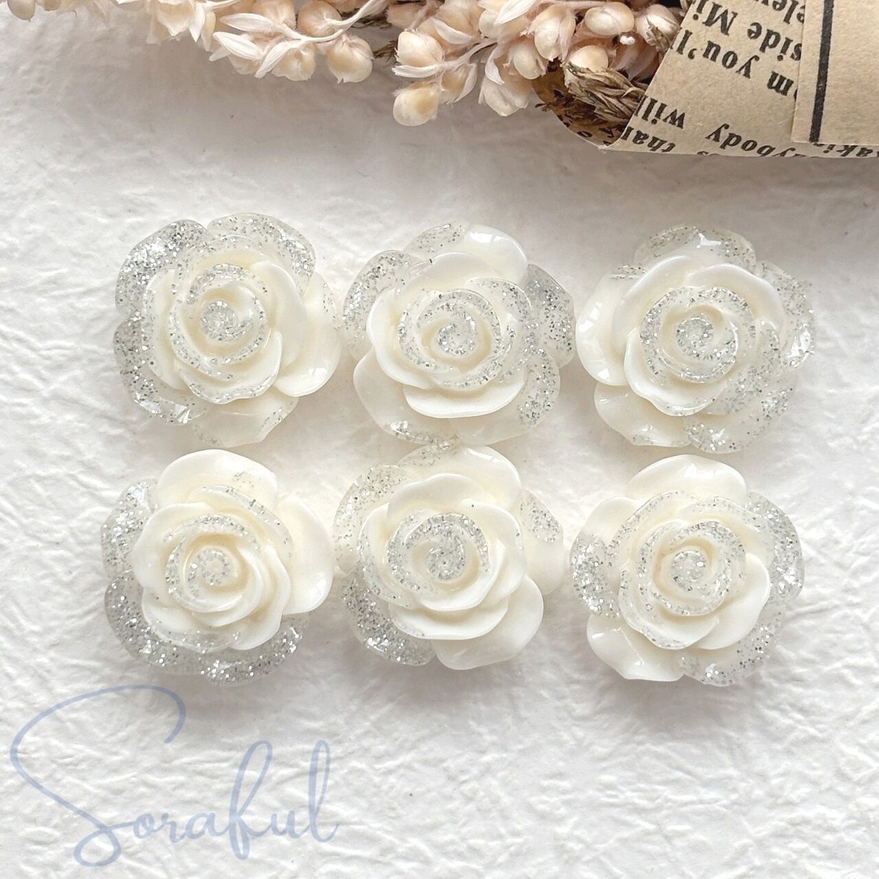 【6個】ラメの薔薇カボション バラ ローズ 19mm【デコパーツ】D-0142