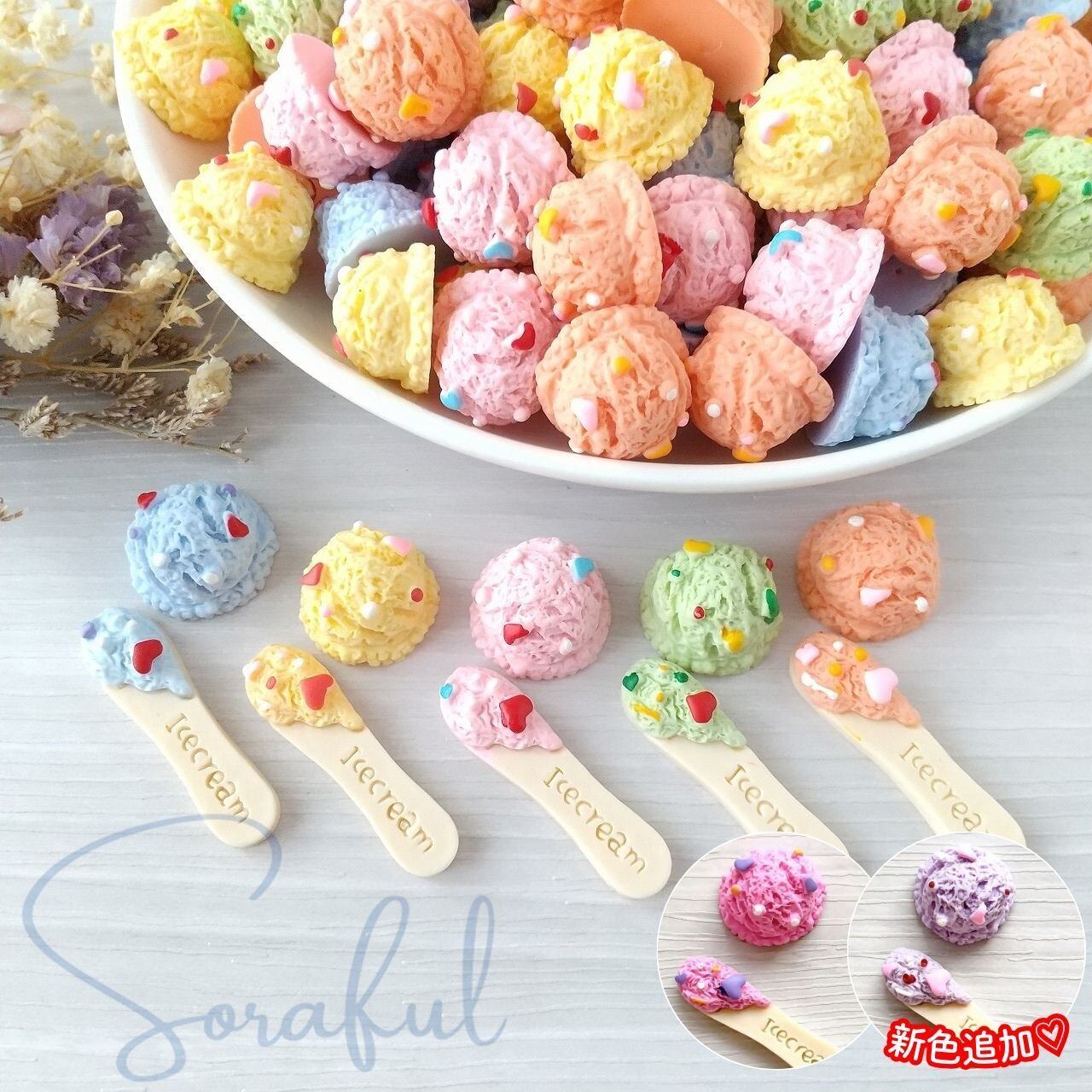 【2個】カラフルアイスクリーム&スプーン セット【デコパーツ】D-0048
