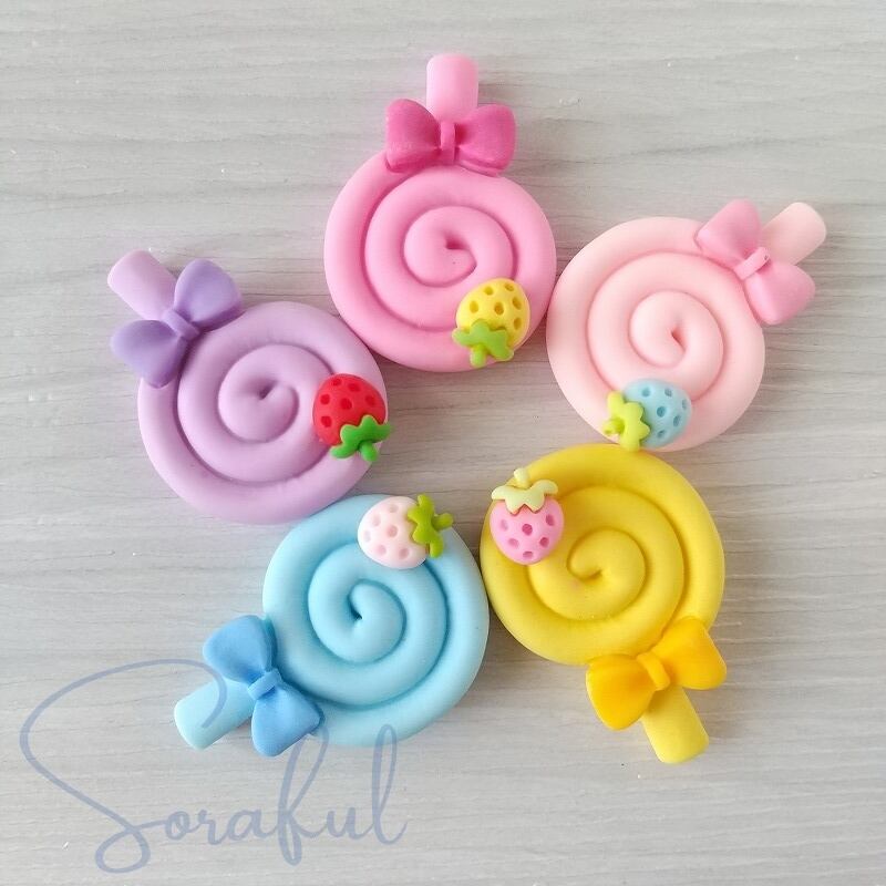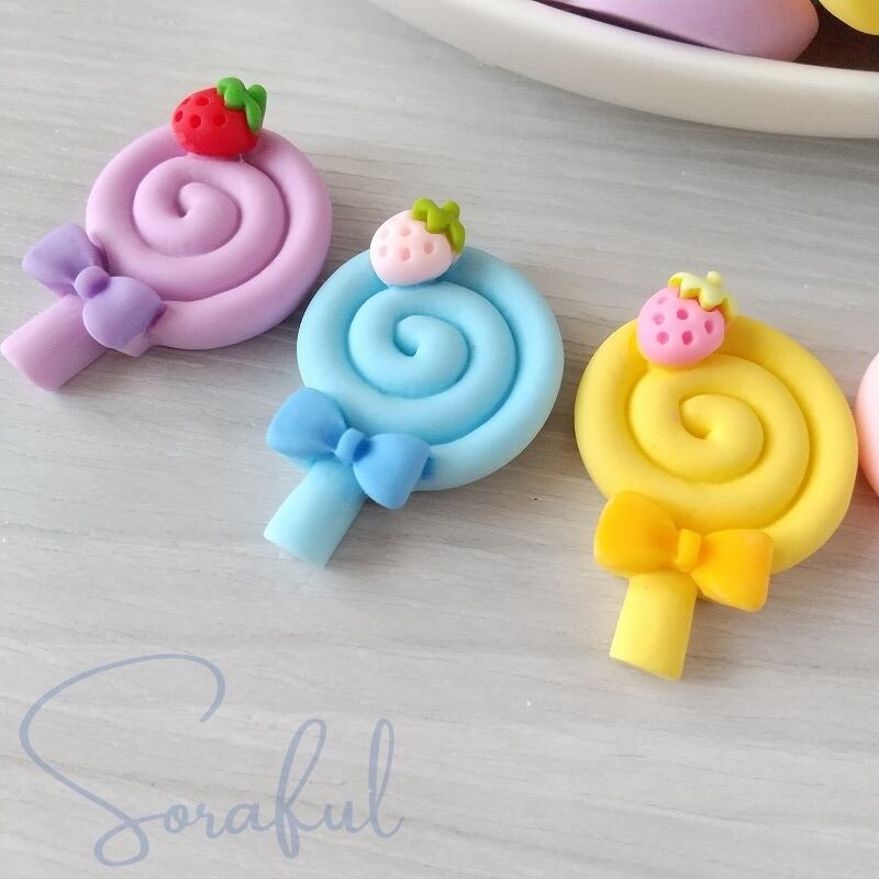 デコパーツ 苺のワンポイントが可愛いカラフルロリポップ うすまきキャンディー 5色セット D-0206