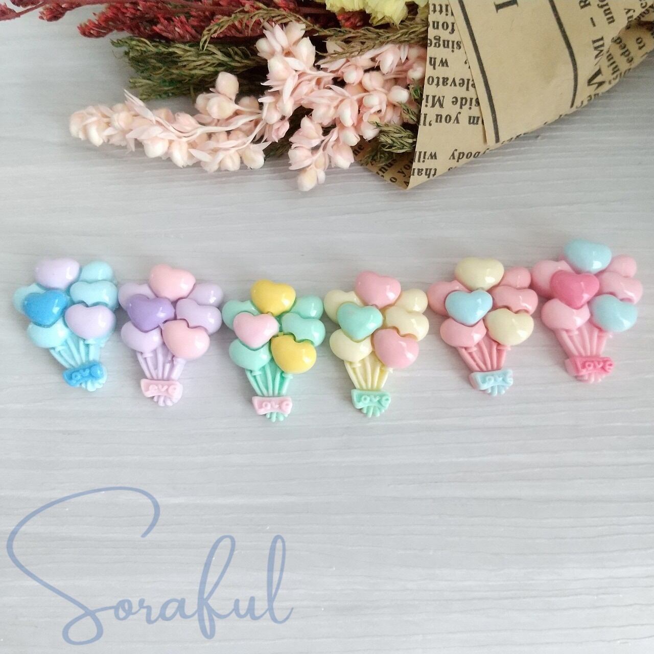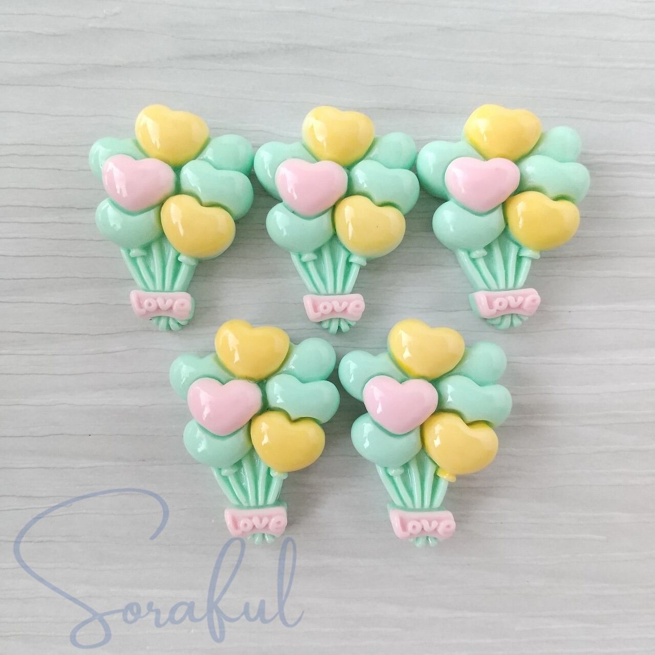 【5個】カラフルハートバルーン【デコパーツ】D-0180