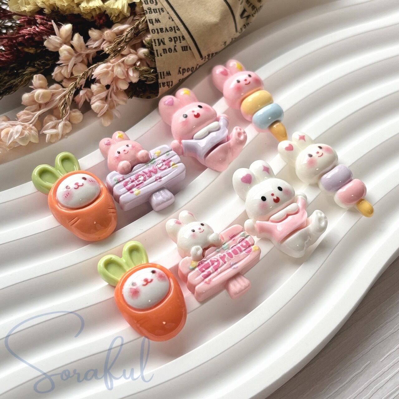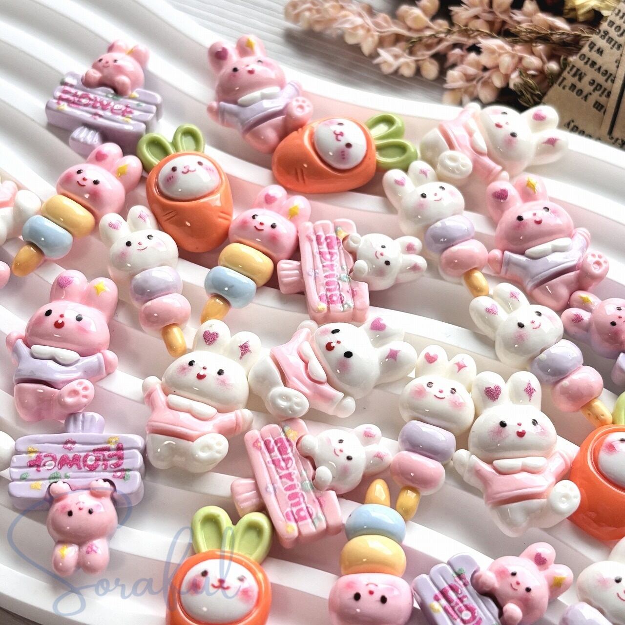 【4種セット】春うさぎと仲間たち【デコパーツ】D-0194