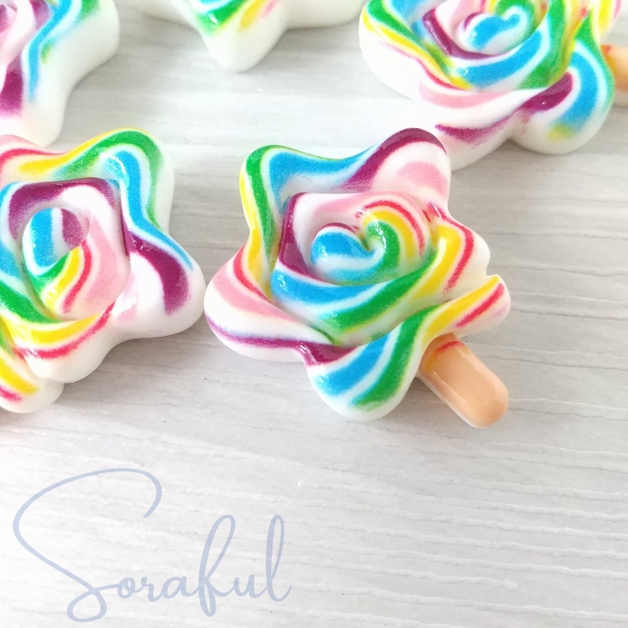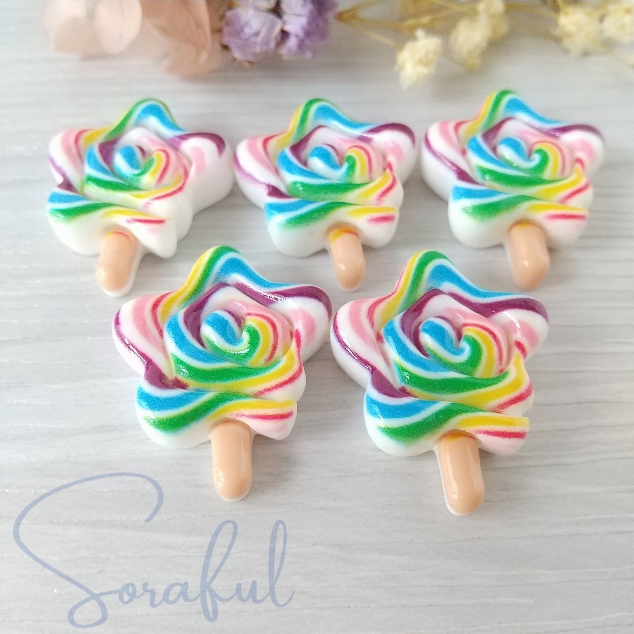 【5個】ゆめかわレインボーカラーの星型ロリポップ キャンディー【デコパーツ】D-0217-CANDY