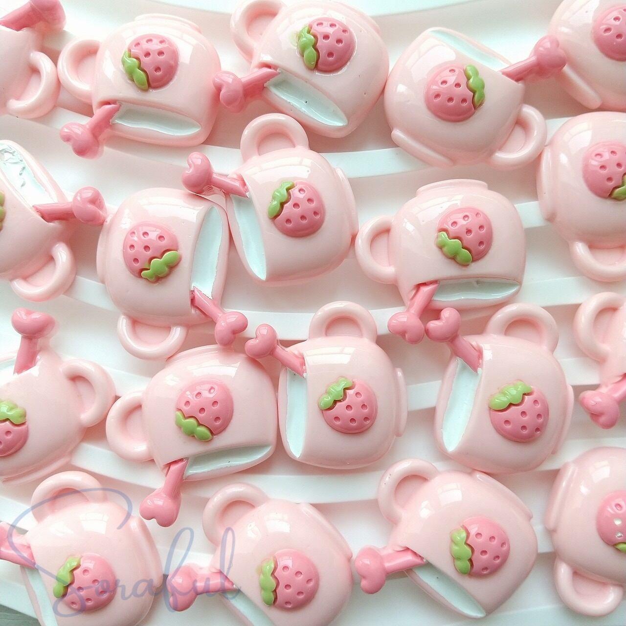 【4個】苺ミルクマグカップ スイーツ ドリンク ストロベリー【デコパーツ】D-0107