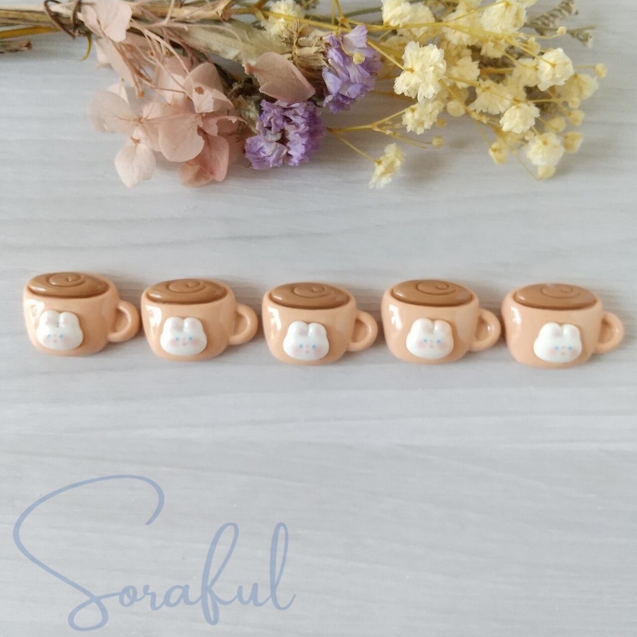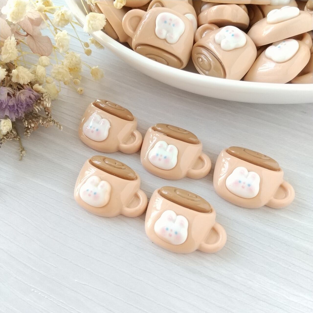 【5個】うさちゃんのコーヒーマグ カフェ マグカップ カフェラテ ココア ドリンク【デコパーツ】D-0111
