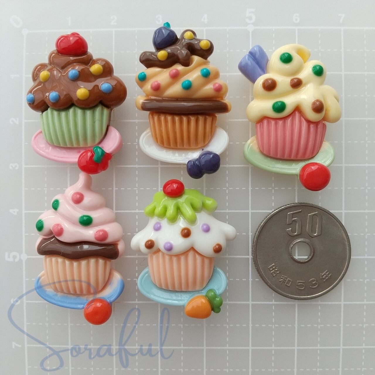 【5種セット】フルーツ&野菜カップケーキ【デコパーツ】D-0067