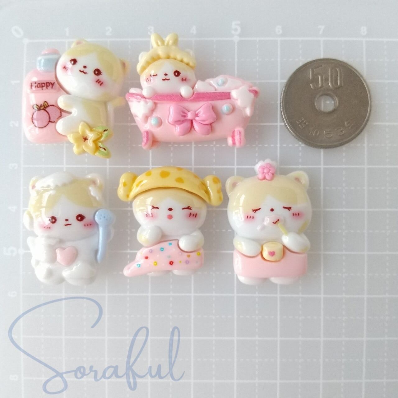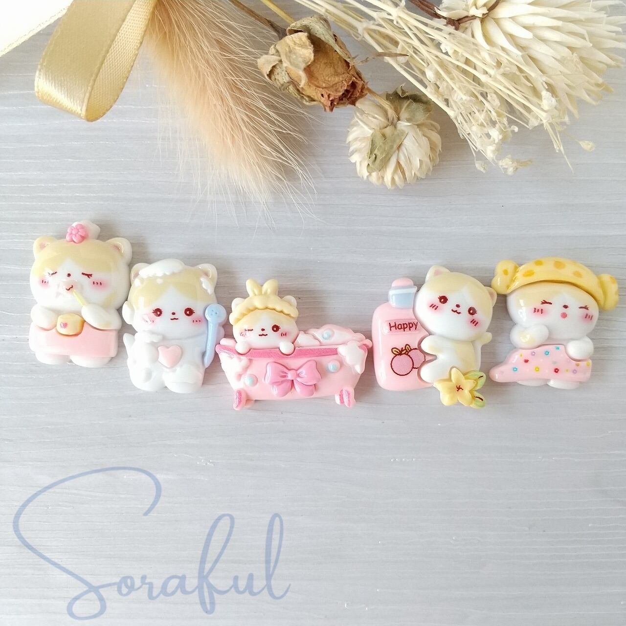 【5種セット】バスタイム猫ちゃん【デコパーツ】D-0388
