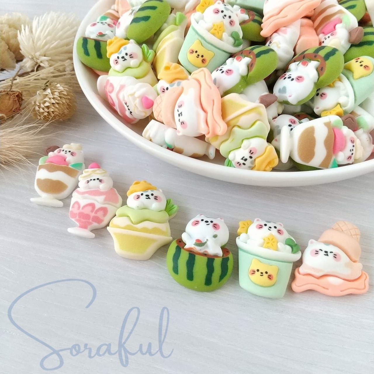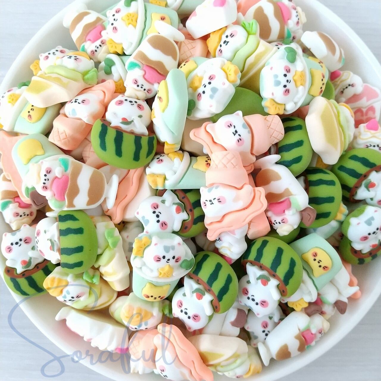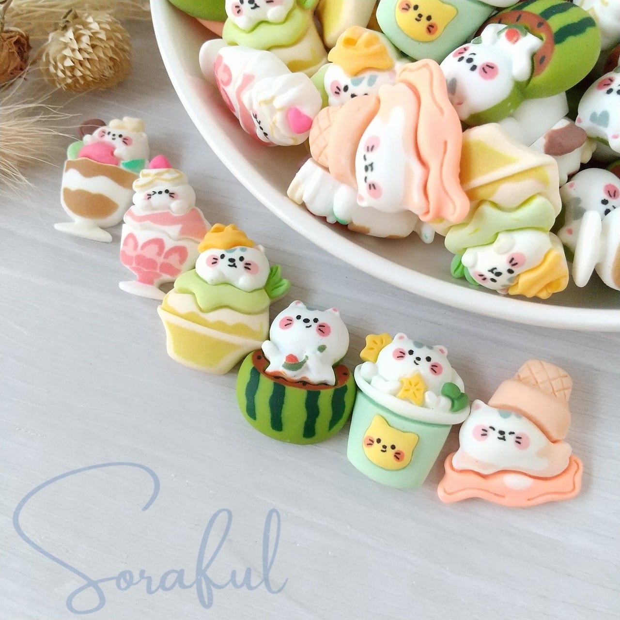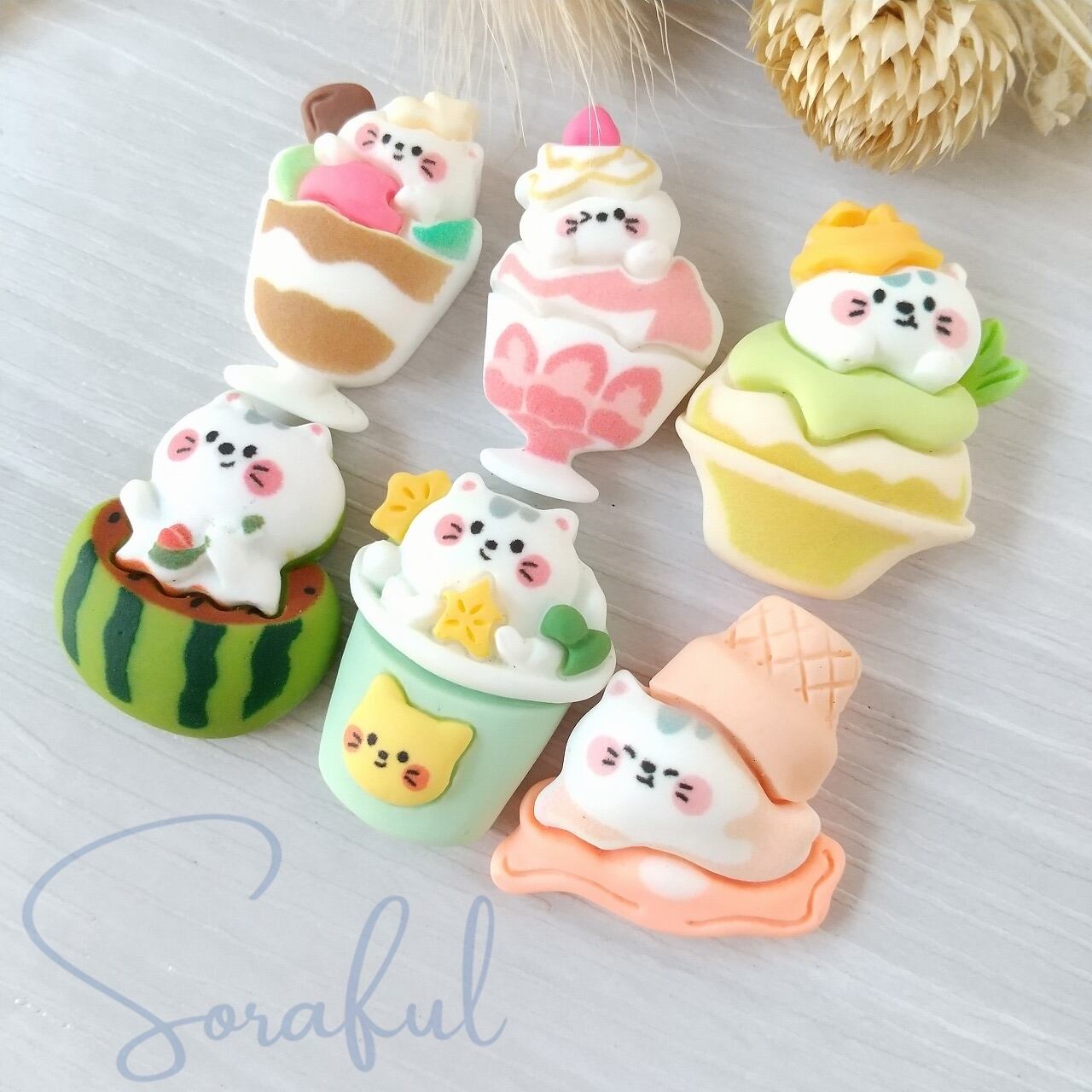 【6種セット】カフェスイーツになった猫ちゃんたち【デコパーツ】D-0396