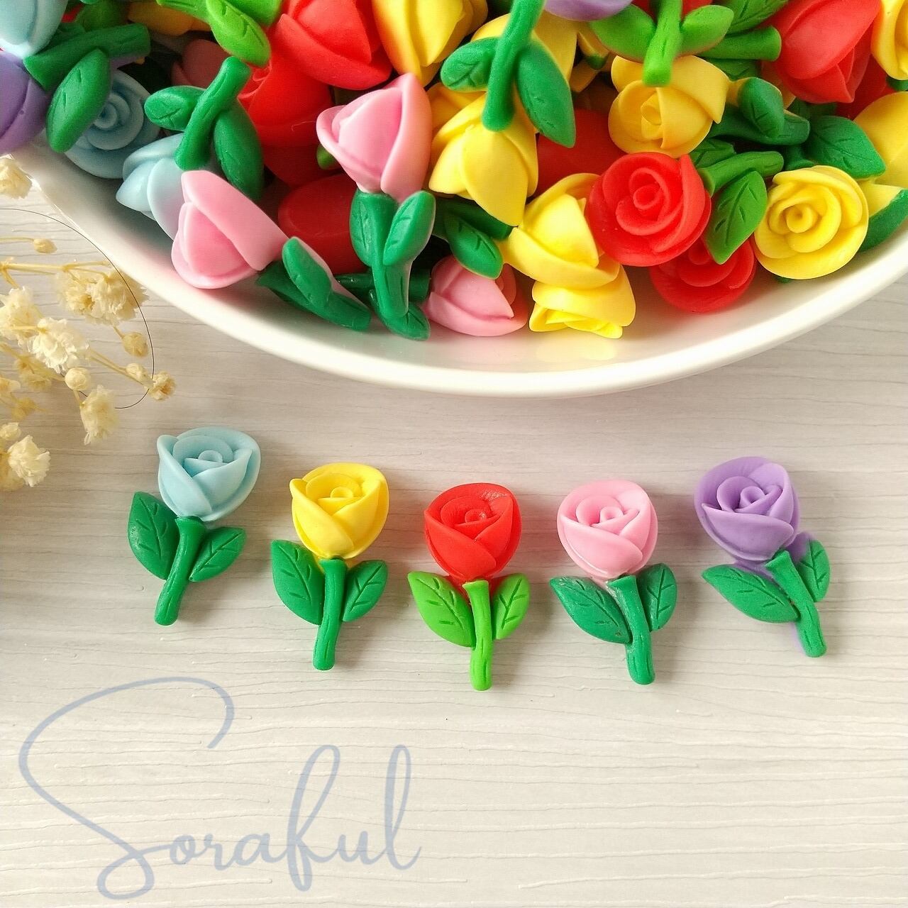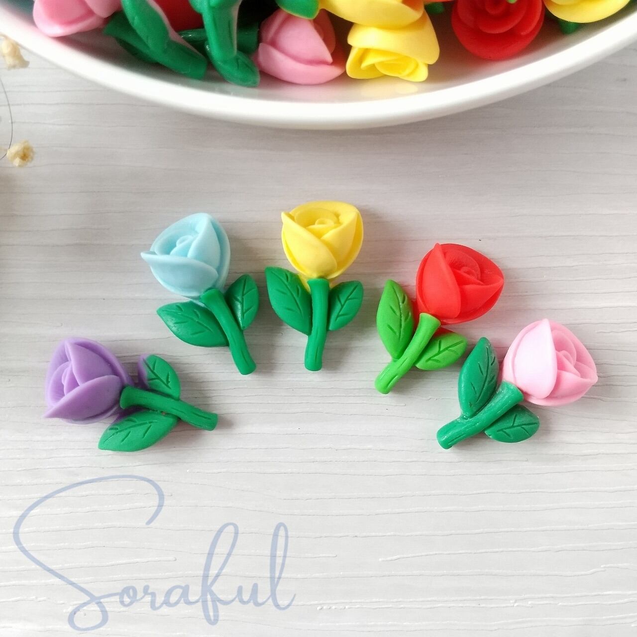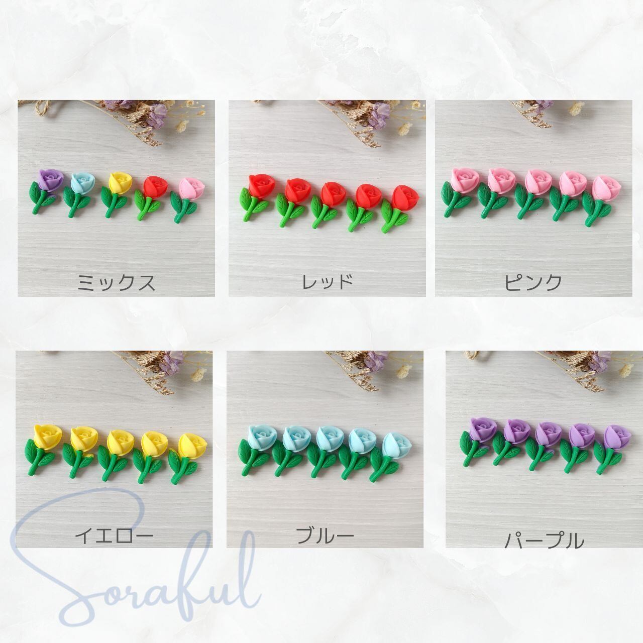 【5個】小ぶりなビビットカラーの薔薇 バラ 花 フラワー【デコパーツ】D-0242