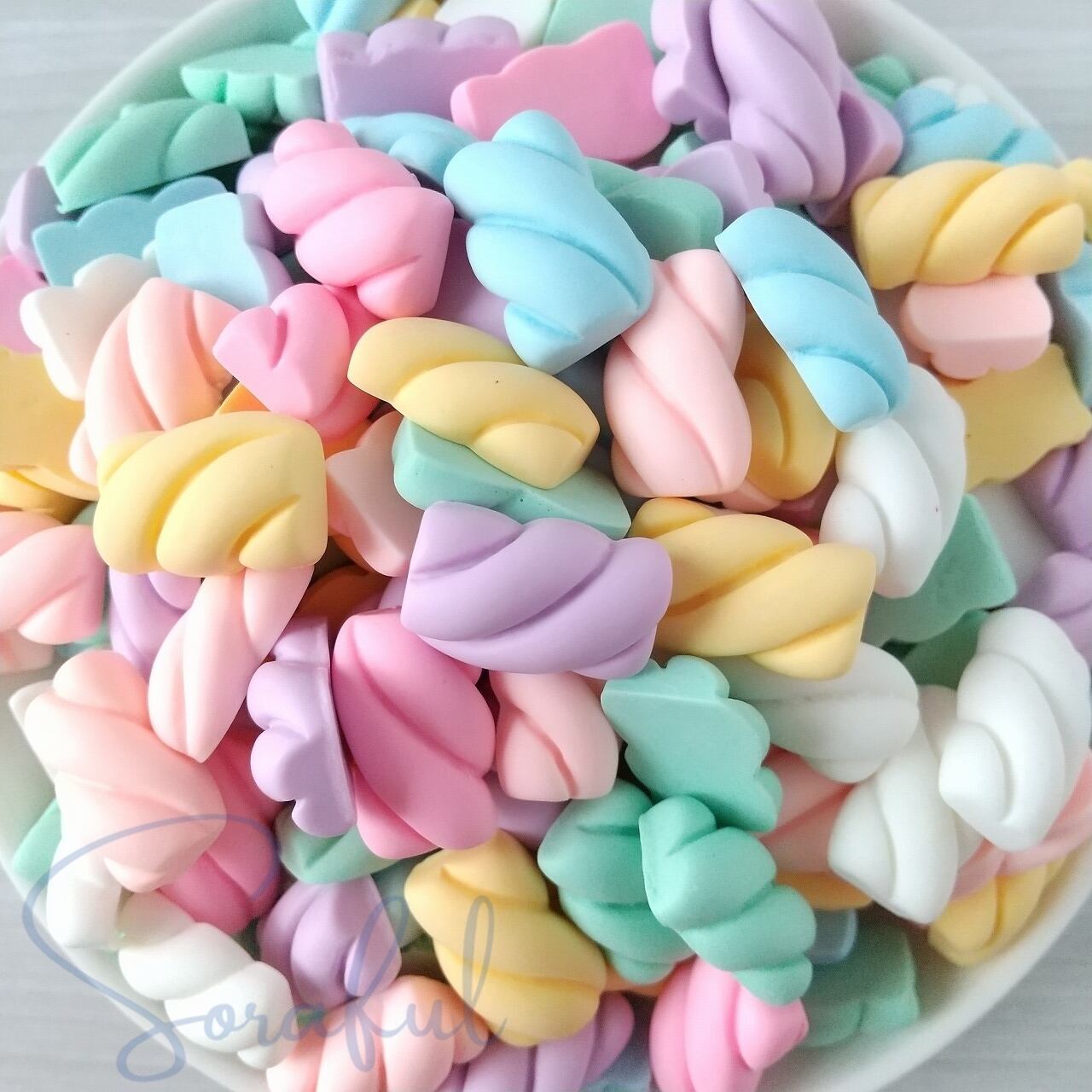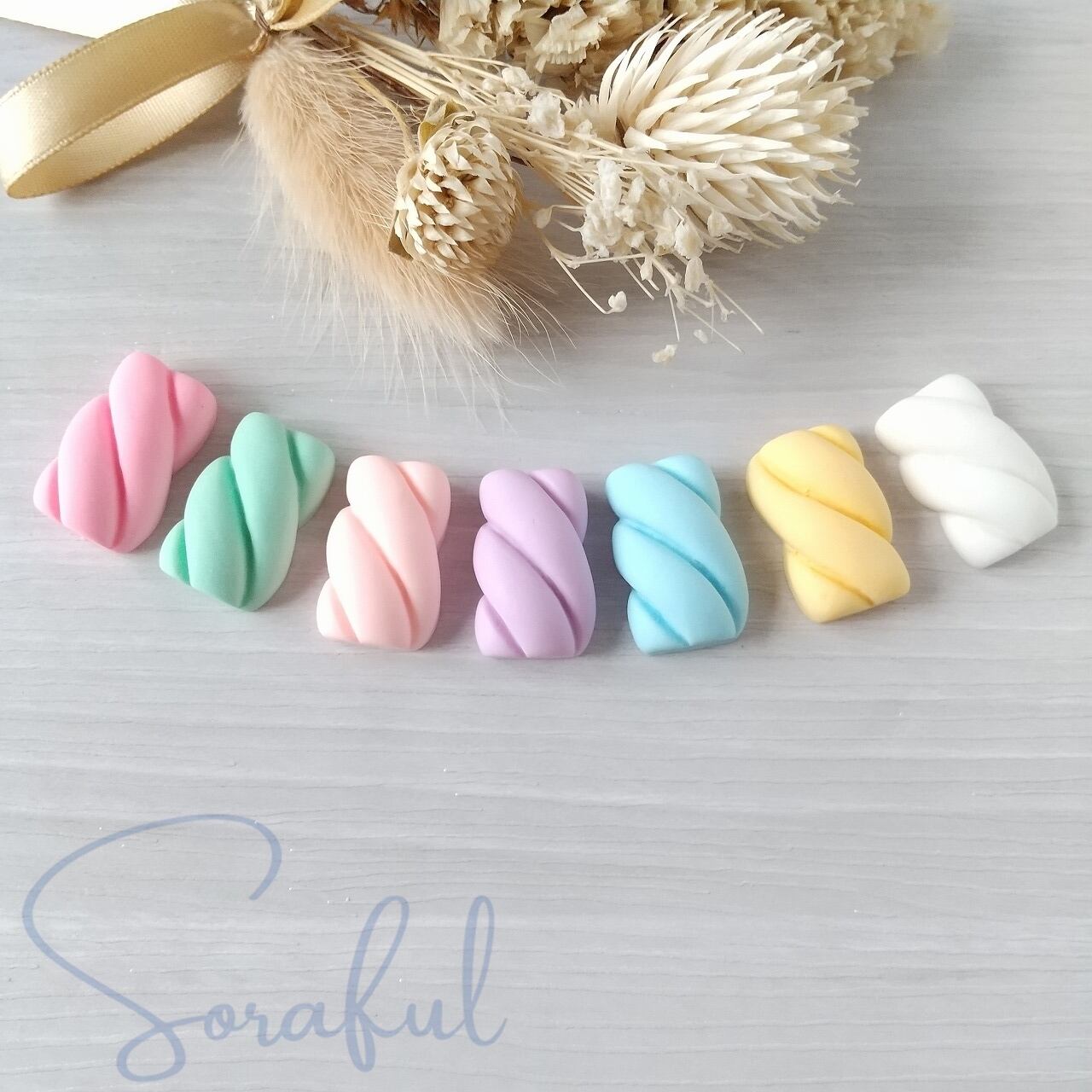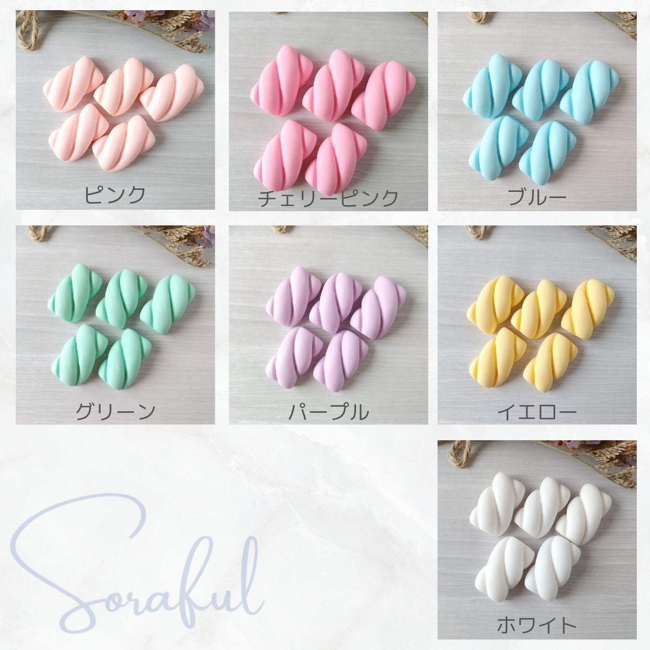 【5個】パステルツイストマシュマロ パステルカラー【デコパーツ】D-0257