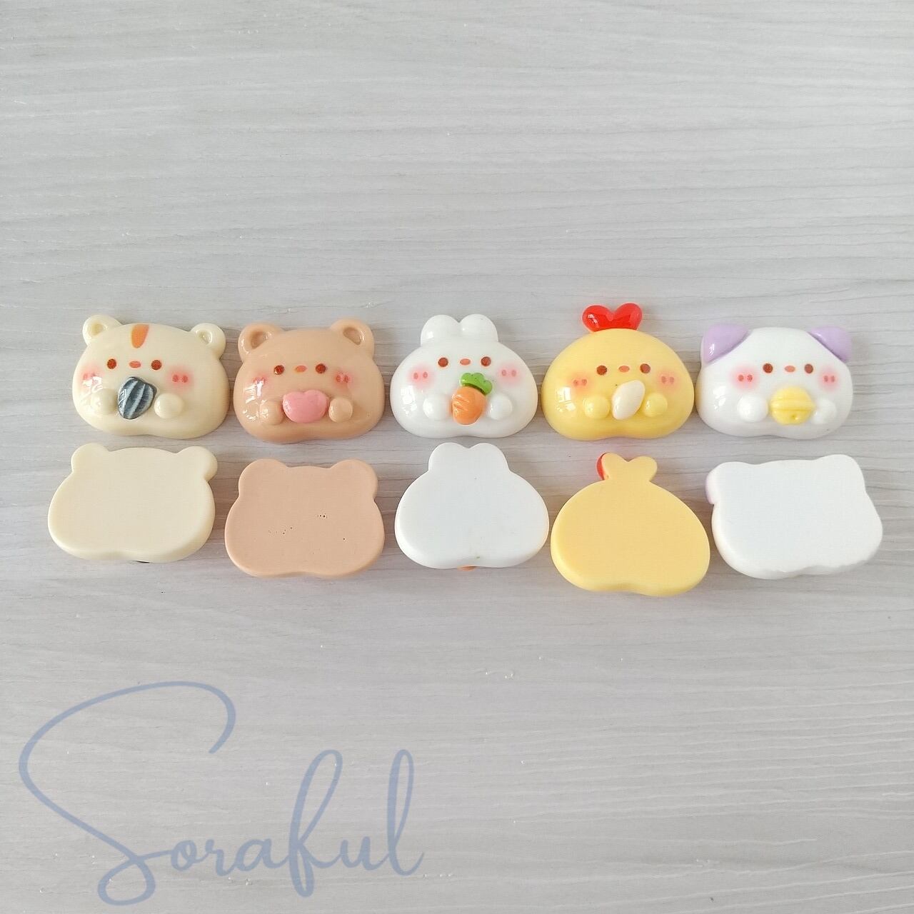 【5個】もぐもぐタイムアニマル 動物 おやつタイム【デコパーツ】D-0411