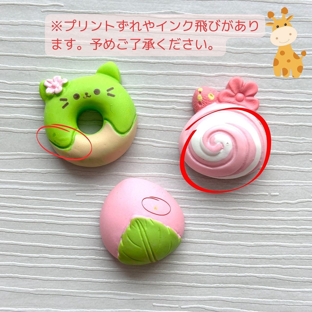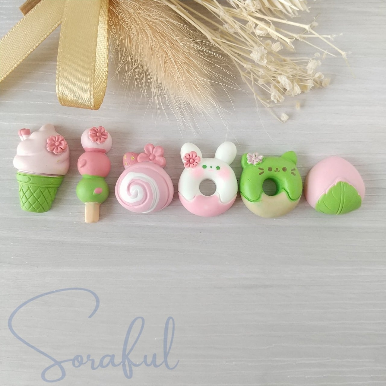 【6種セット】和風スイーツセット 抹茶 桜 うさぎ ねこ 餅 団子 アイスクリーム ドーナツ【デコパーツ】D-0324