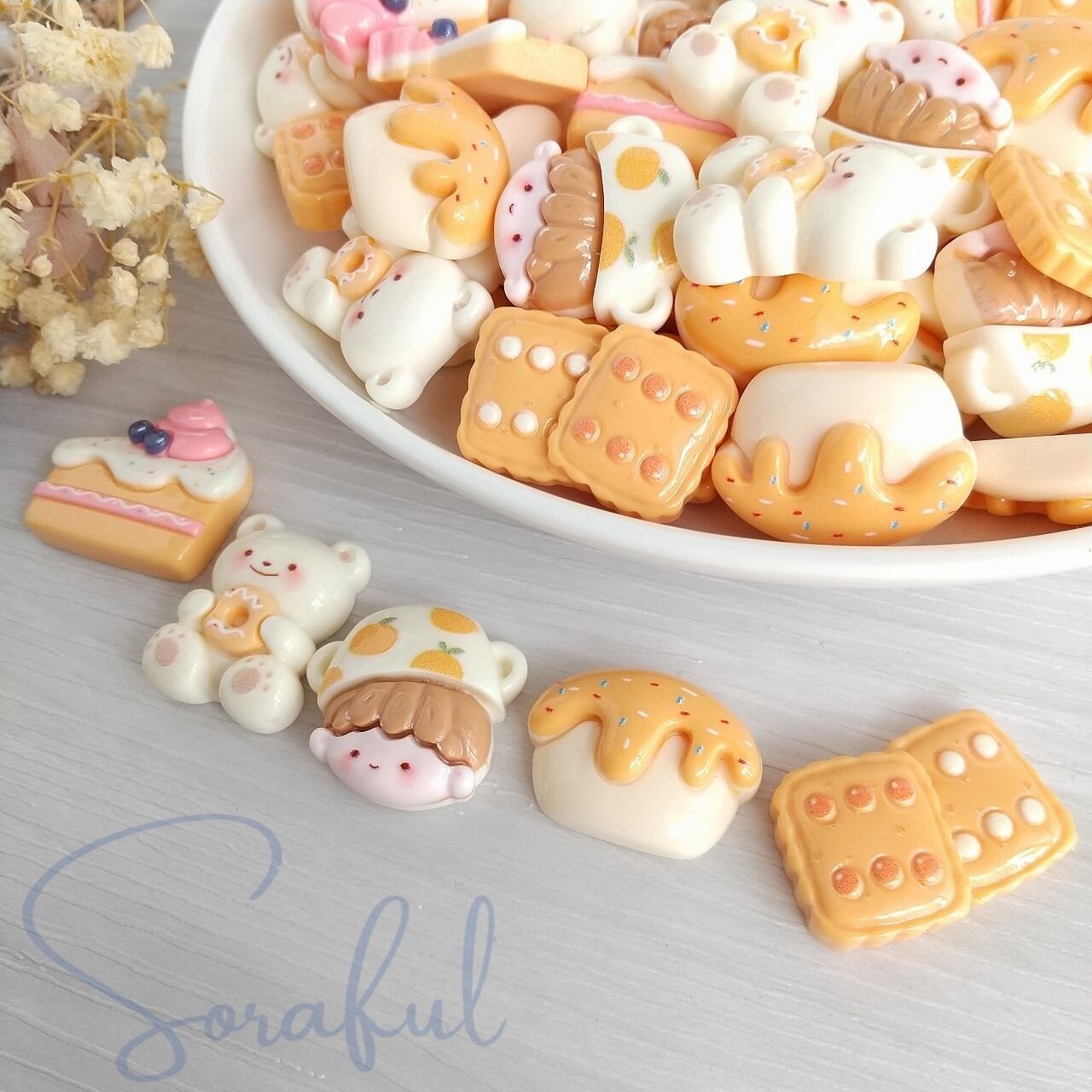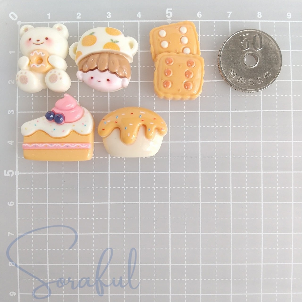 【5種セット】くまちゃんとオレンジスイーツ パティシエ ペイストリー ケーキ クッキー ビスケット くま【デコパーツ】D-0409