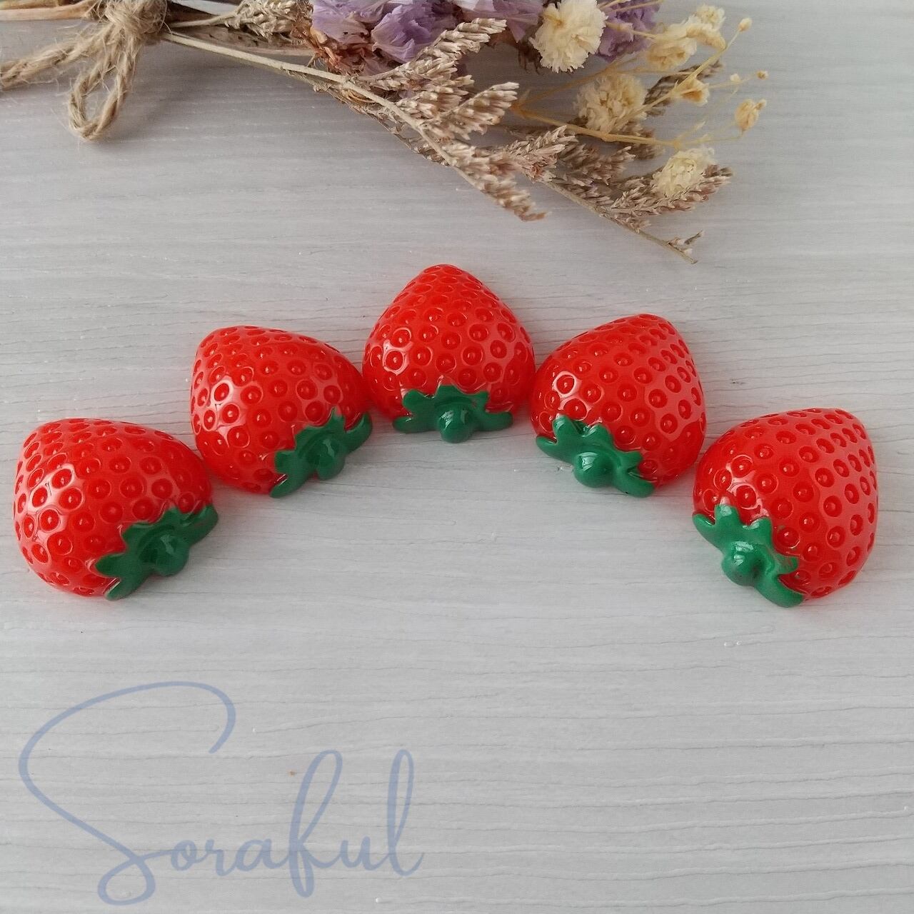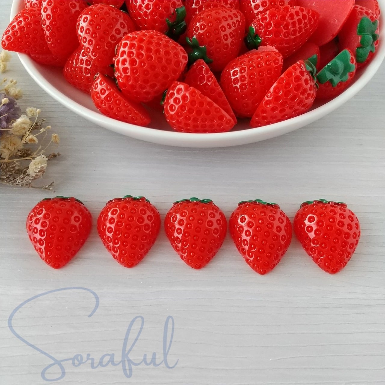 デコパーツ ナチュラルいちご Lサイズ ストロベリー 半立体 ハーフタイプ 5個 D-0237L