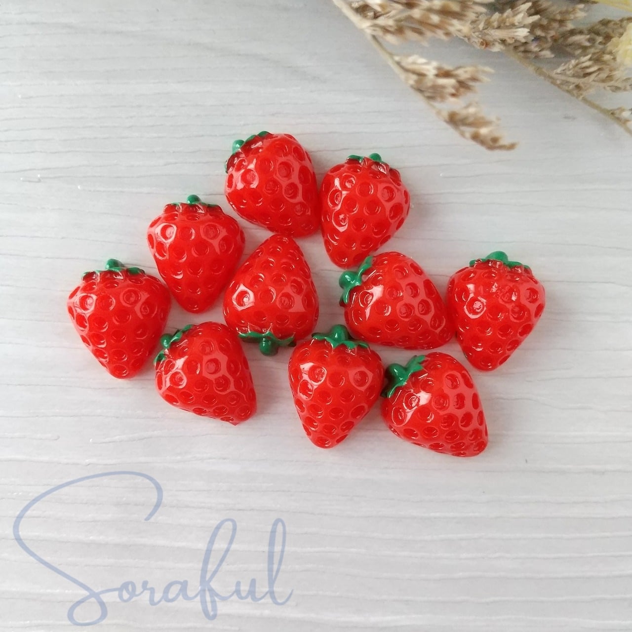 デコパーツ ナチュラルいちご Sサイズ ストロベリー 半立体 ハーフタイプ 10個 D-0237S