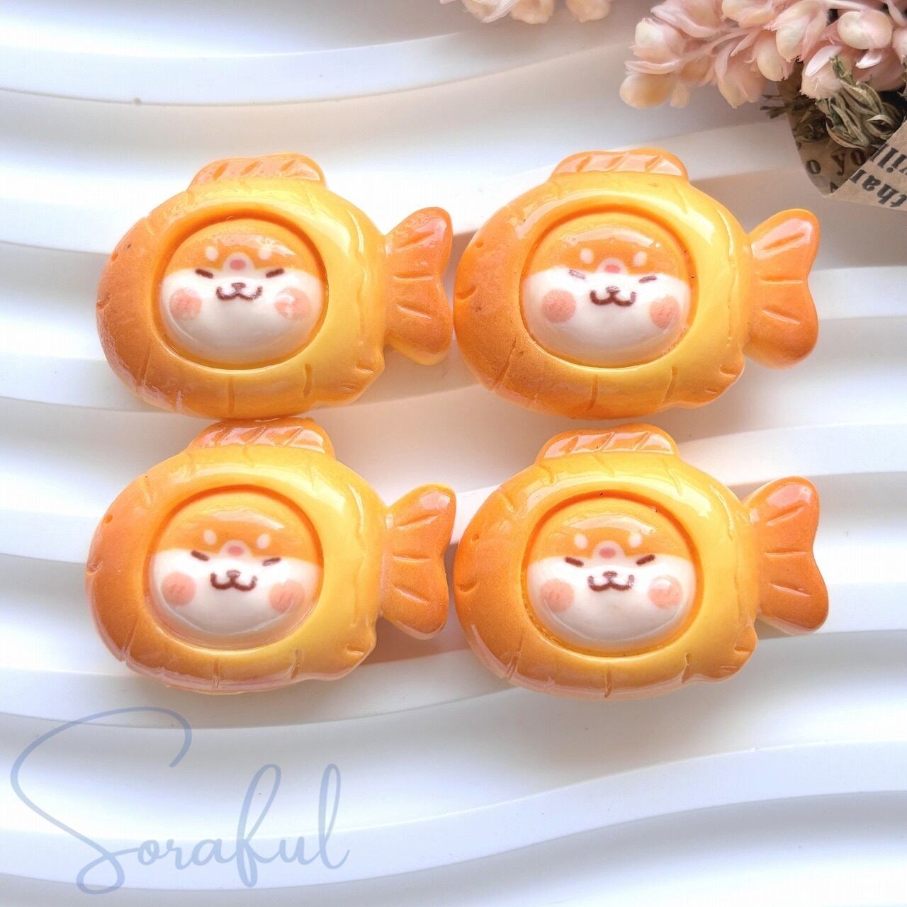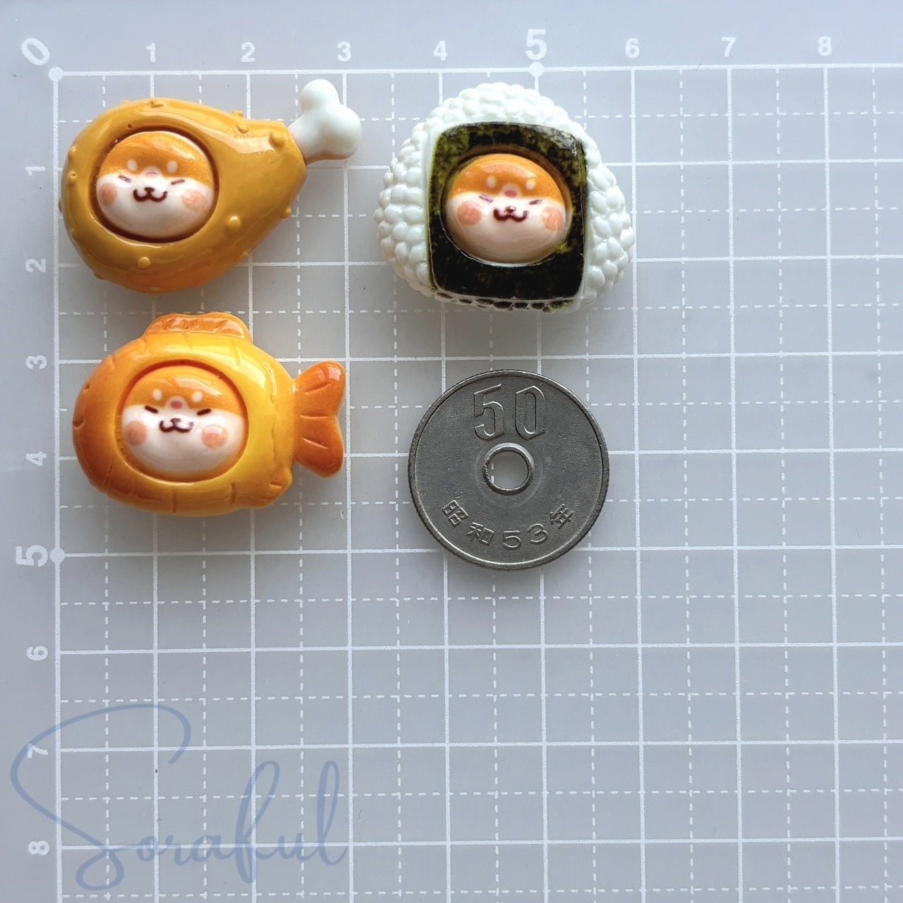 【4個】柴犬 フライドチキン たい焼き おにぎり しばいぬ【デコパーツ】D-0501
