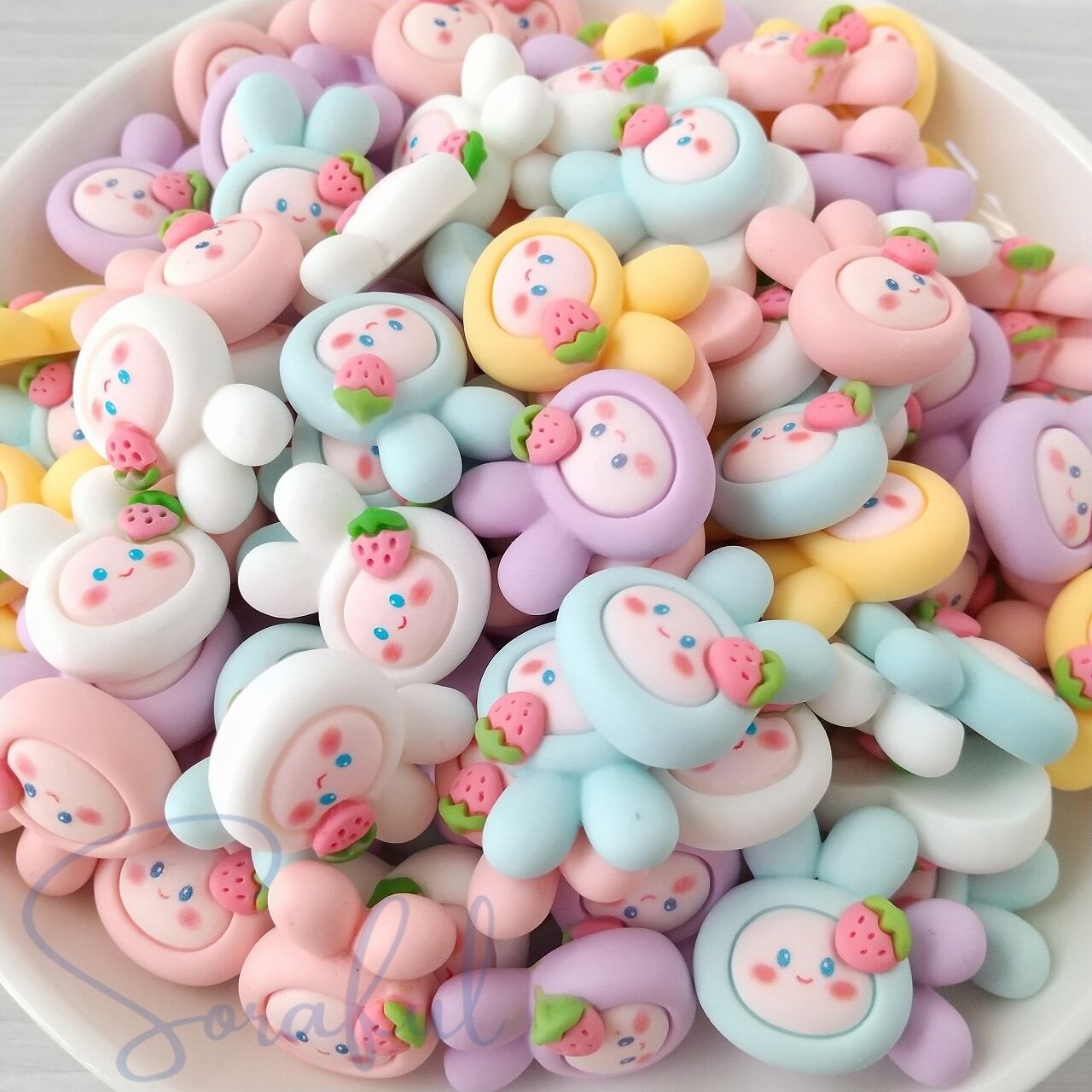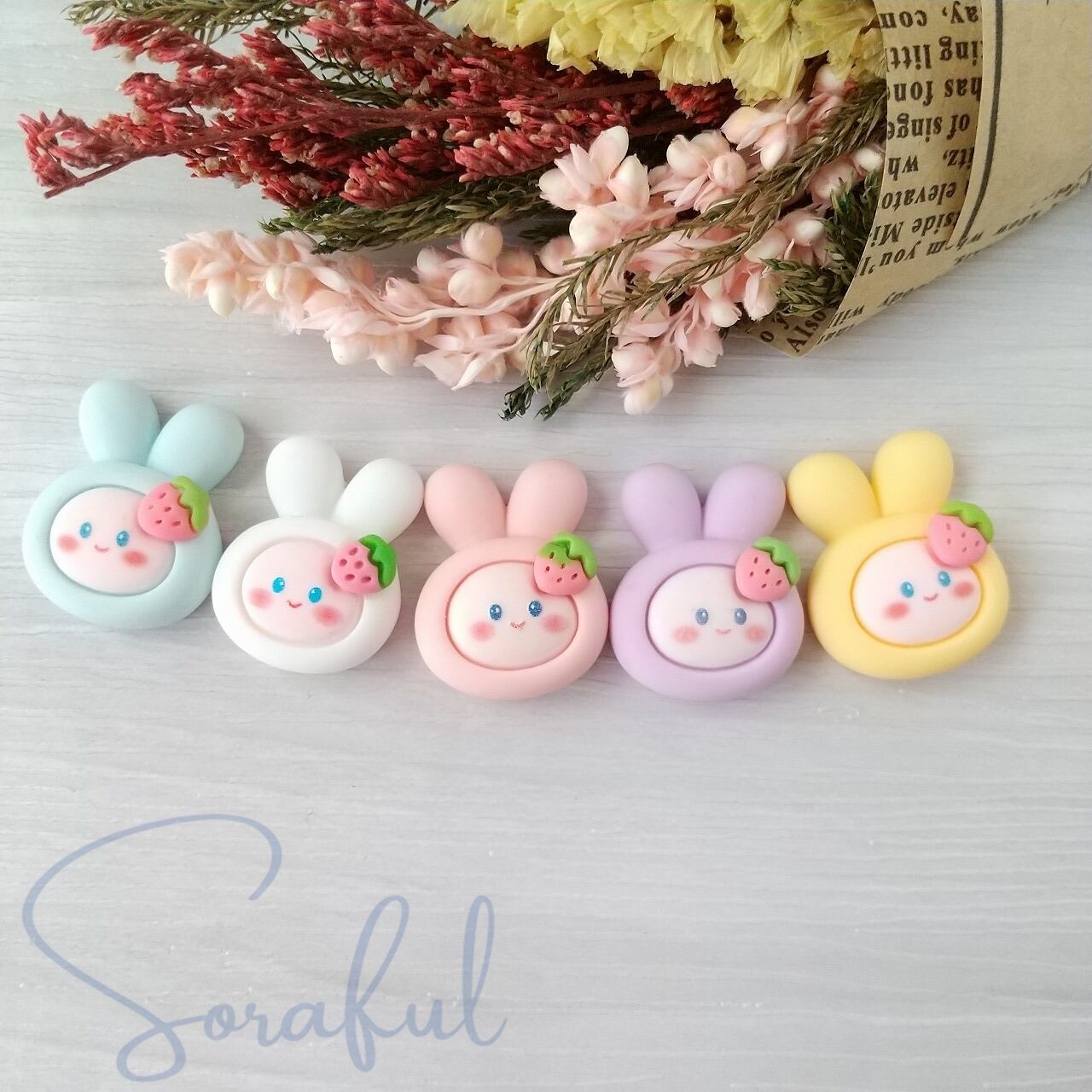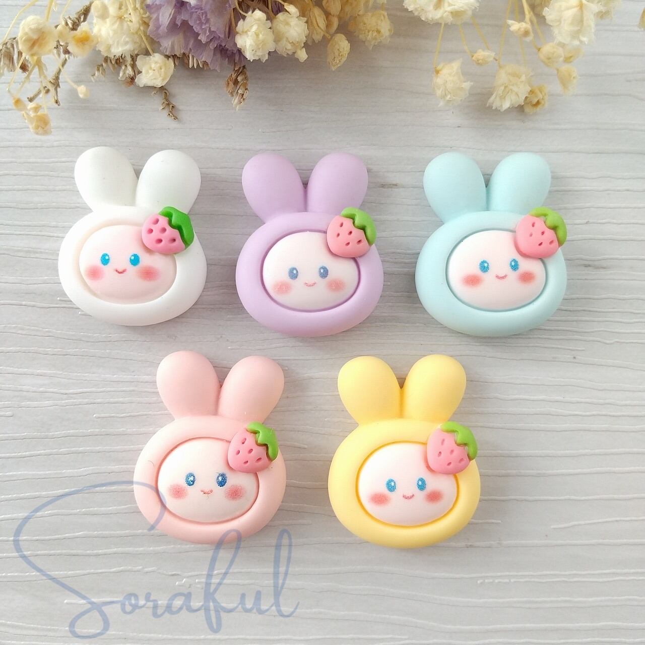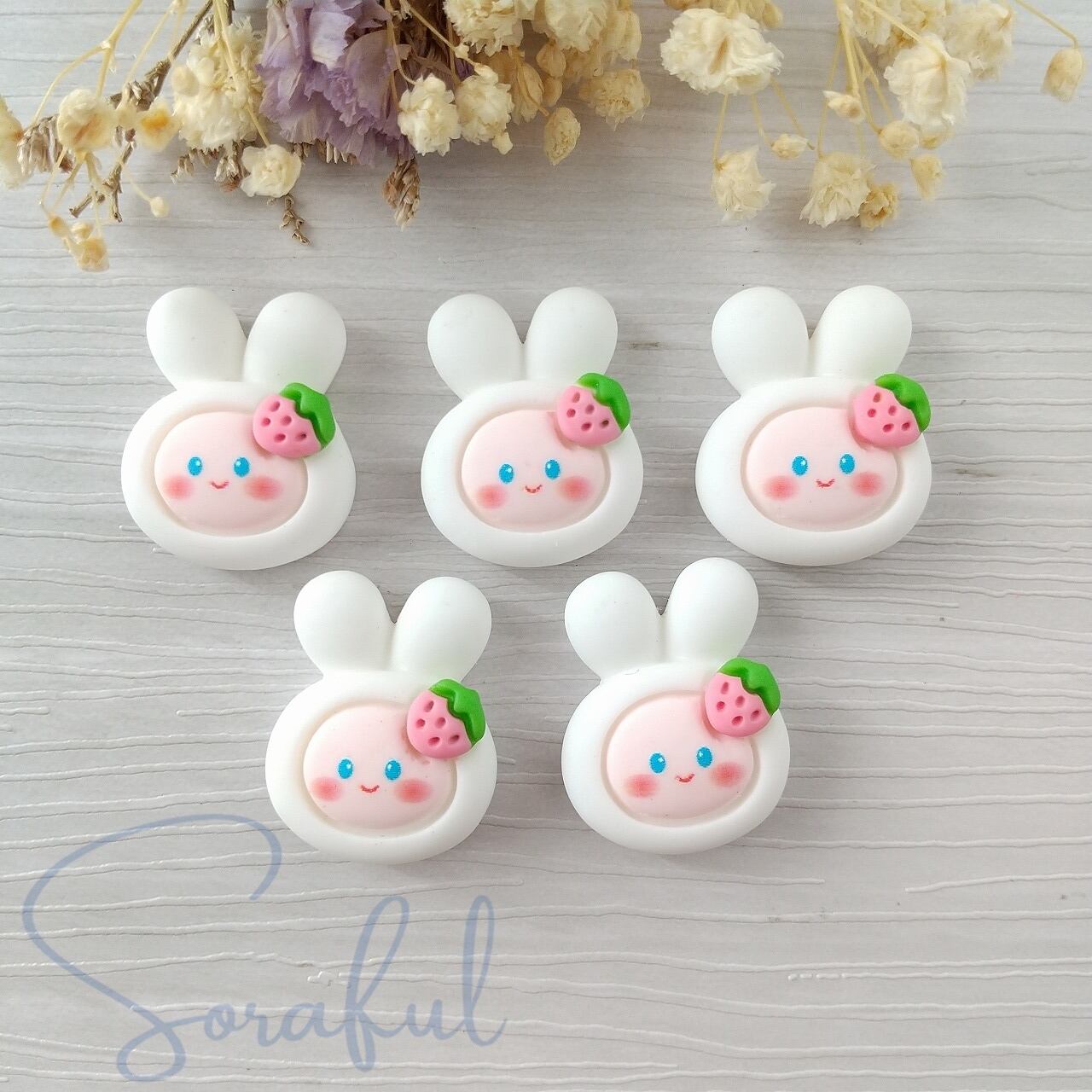 【5個】コロンとまあるい かぶりものうさちゃん いちご ウサギ うさぎ【デコパーツ】D-0478