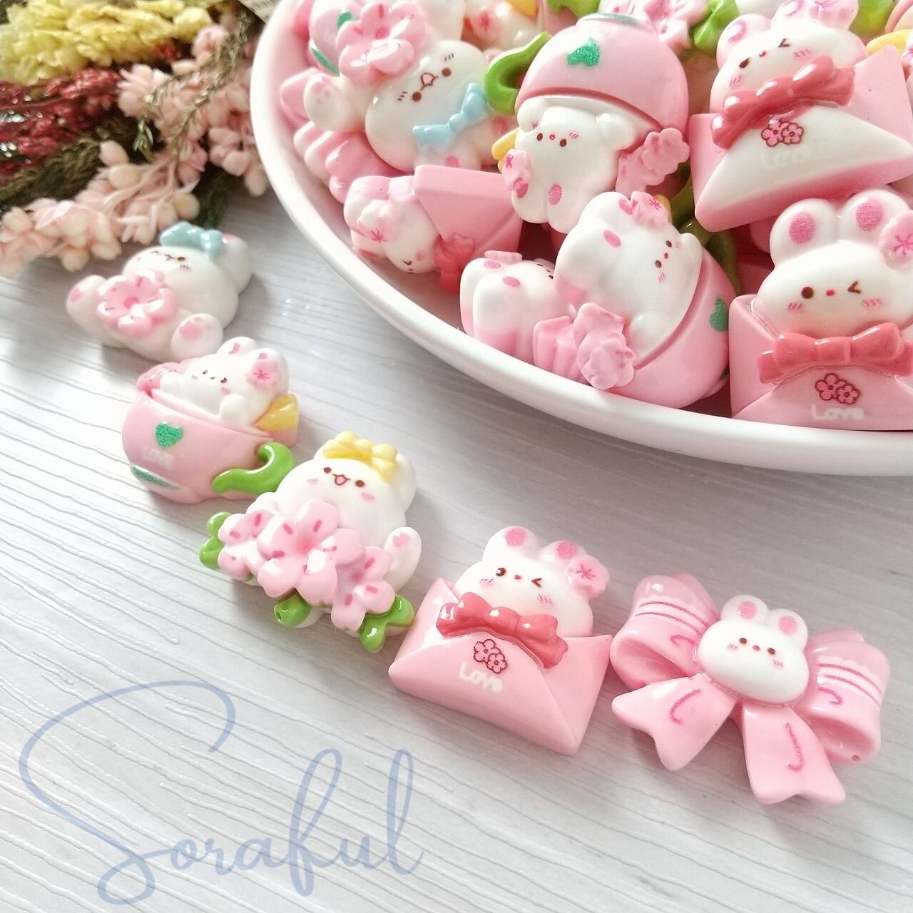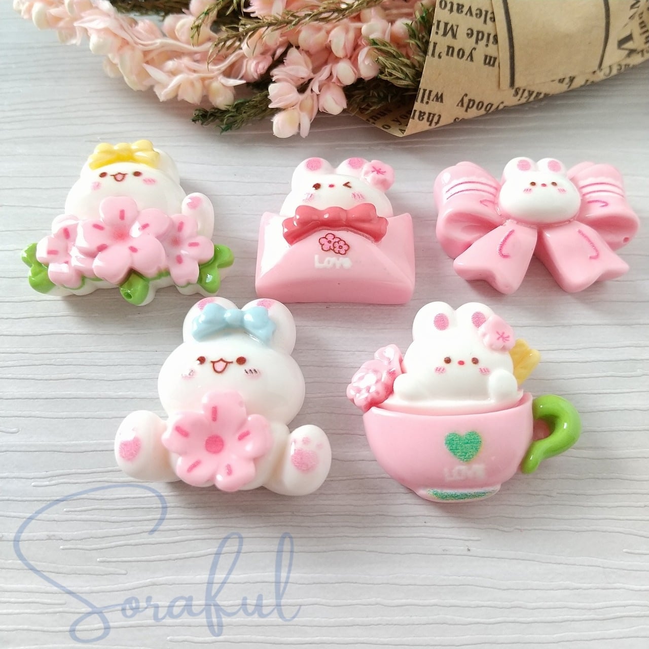【5種セット】うさちゃんの桜まつり お花見 さくら ピンク リボン 桜 手紙 カップ うさぎ【デコパーツ】D-0320