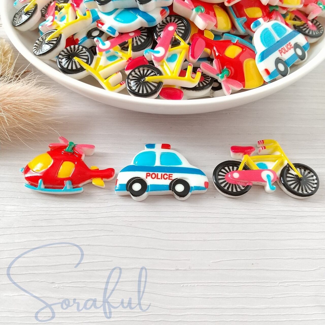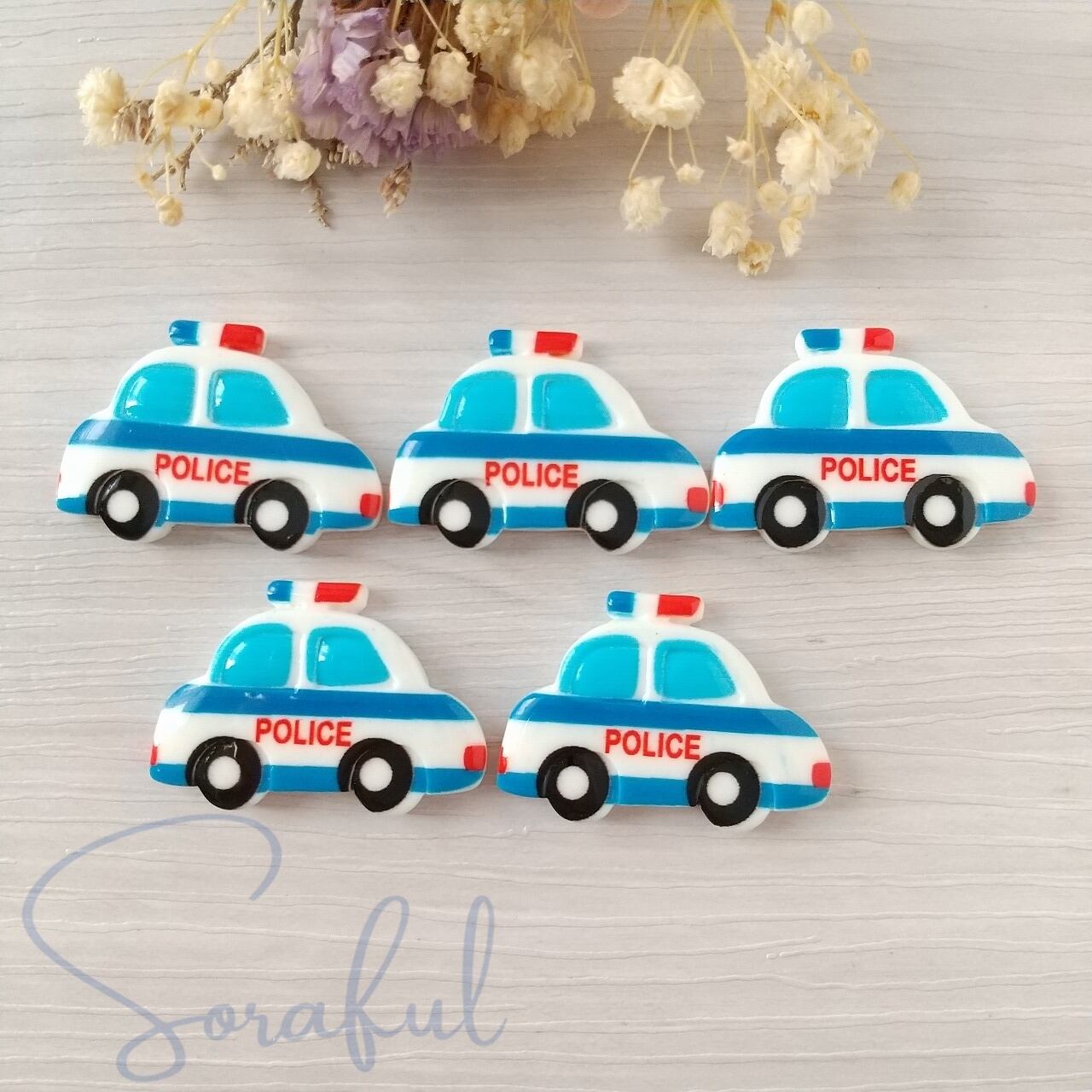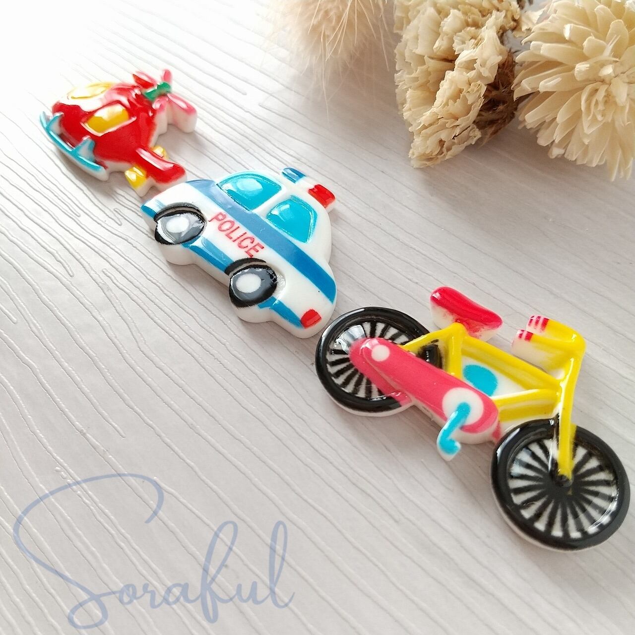 【5個】乗り物シリーズ フラットタイプ パトカー ヘリコプター 自転車【デコパーツ】D-0469