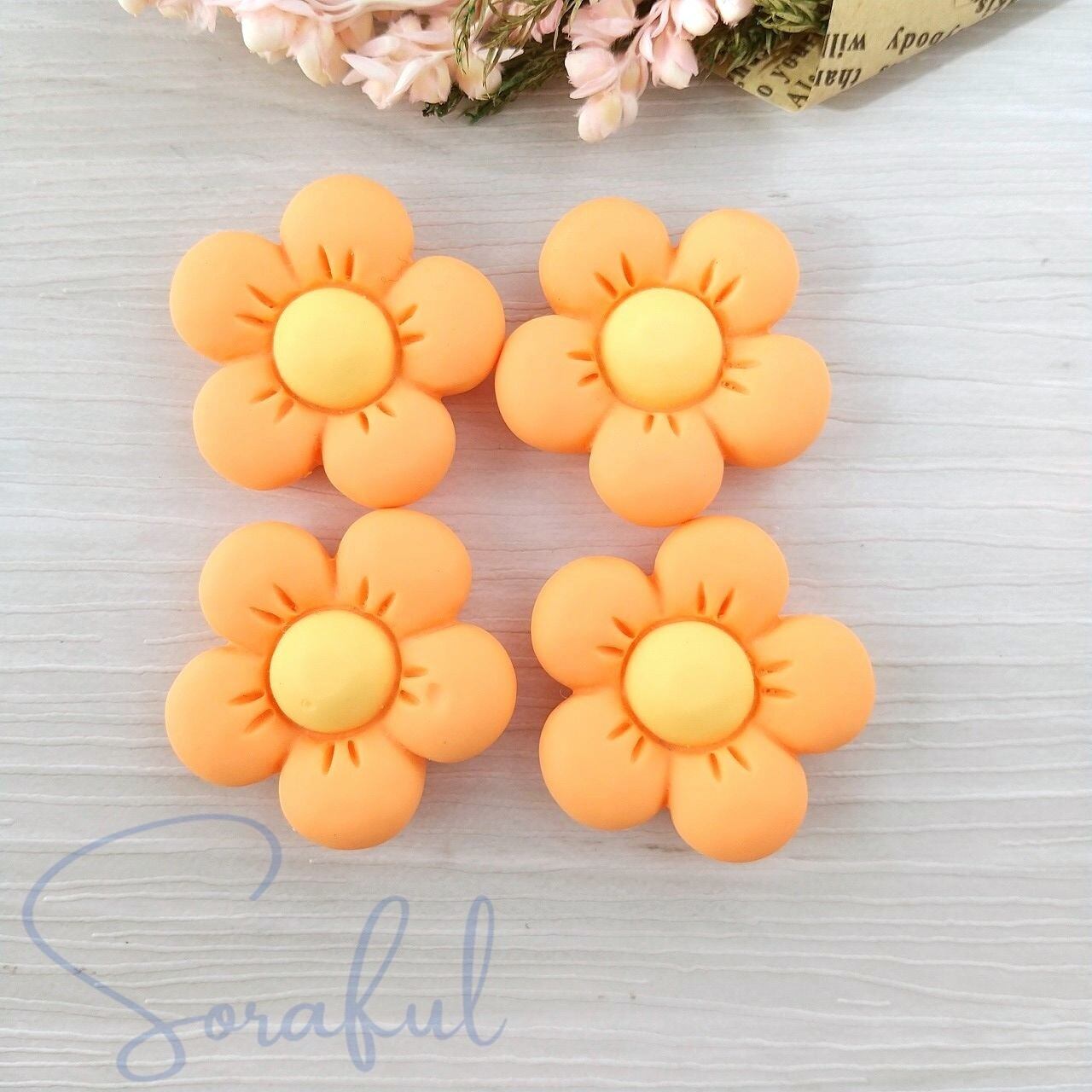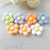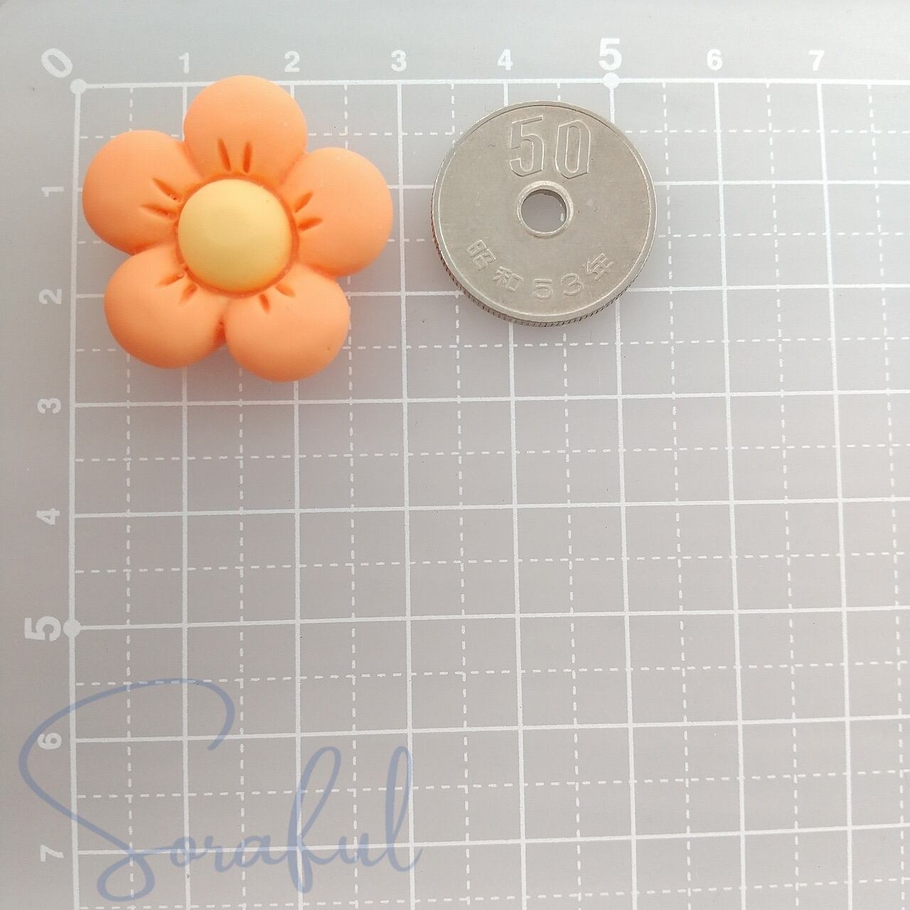 【4個】マットなぽってりフラワー カラフル パステル ぷっくり【デコパーツ】D-0477