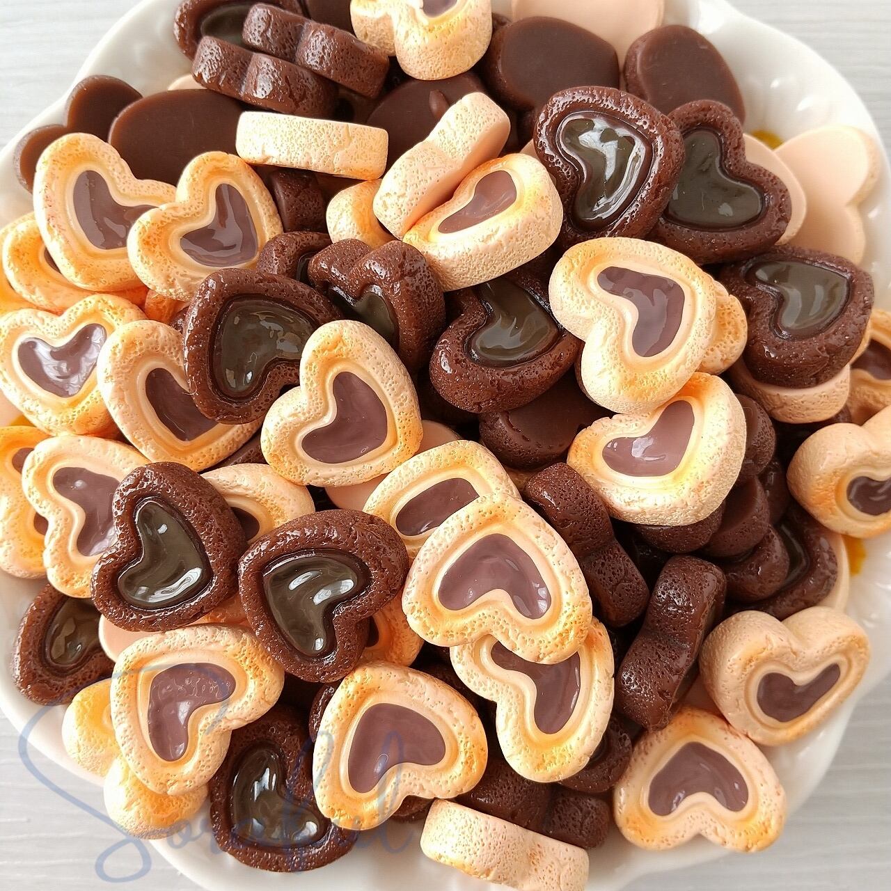 【5個】ハート型チョコレート クッキー【デコパーツ】D-0503