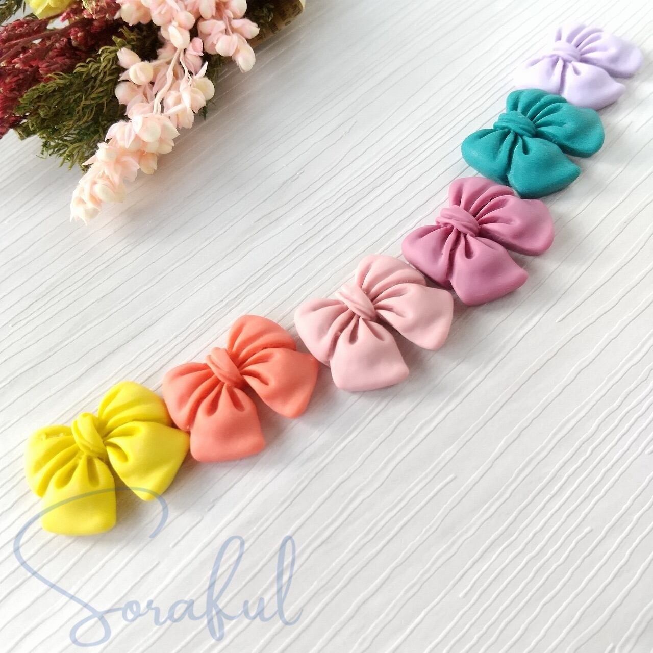 【5個】リボン くすみカラー オールドファッション Sサイズ【デコパーツ】D-0024