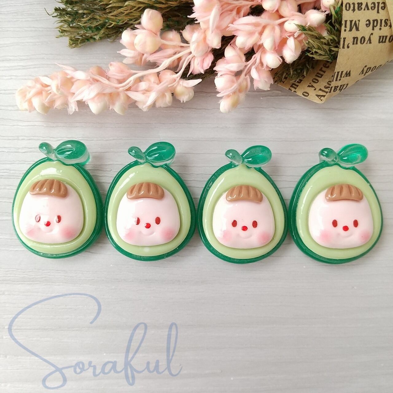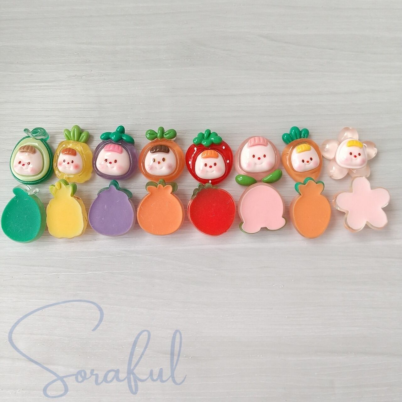 【4個】野菜と果物のかぶりものフェイス クリア【デコパーツ】D-0202-4