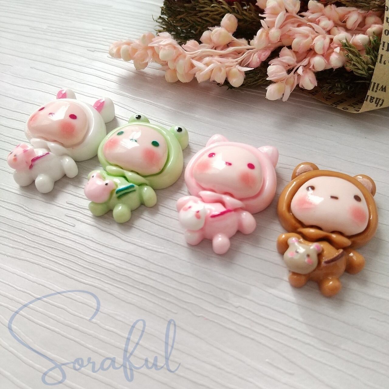 【4個】着ぐるみ園児【デコパーツ】D-0531