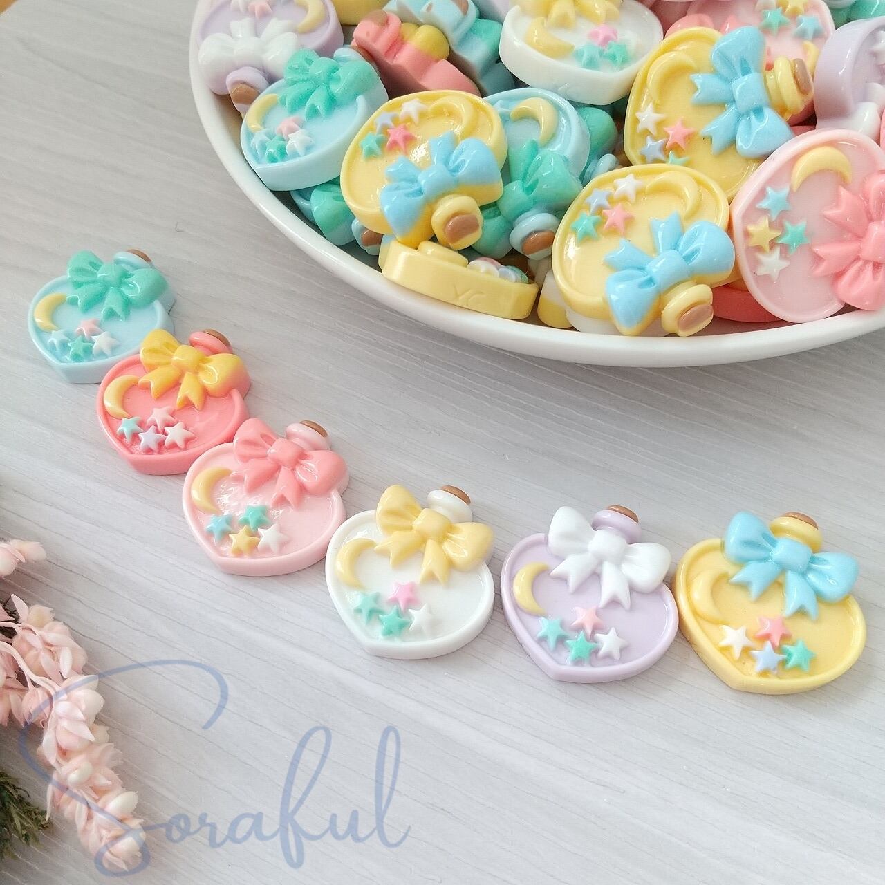 デコパーツ 魔法の小瓶 ゆめかわ 星 月 リボン 6色セット 6個 D-0525