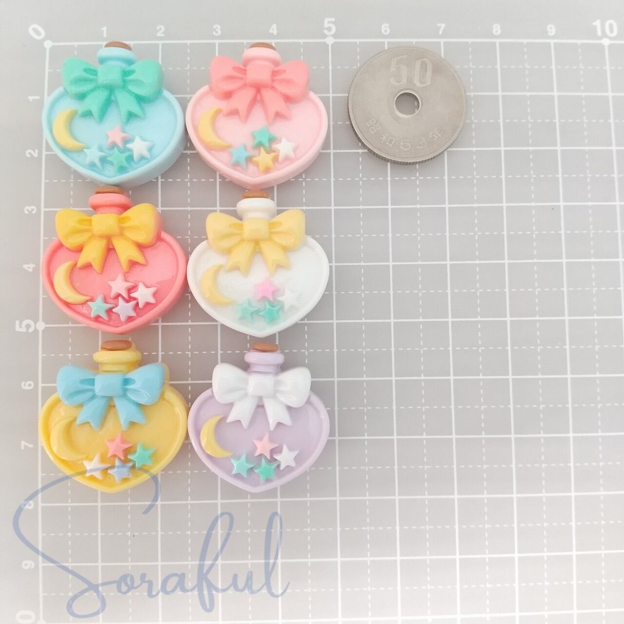 【6色セット】魔法の小瓶 ゆめかわ 星 月 リボン【デコパーツ】D-0525