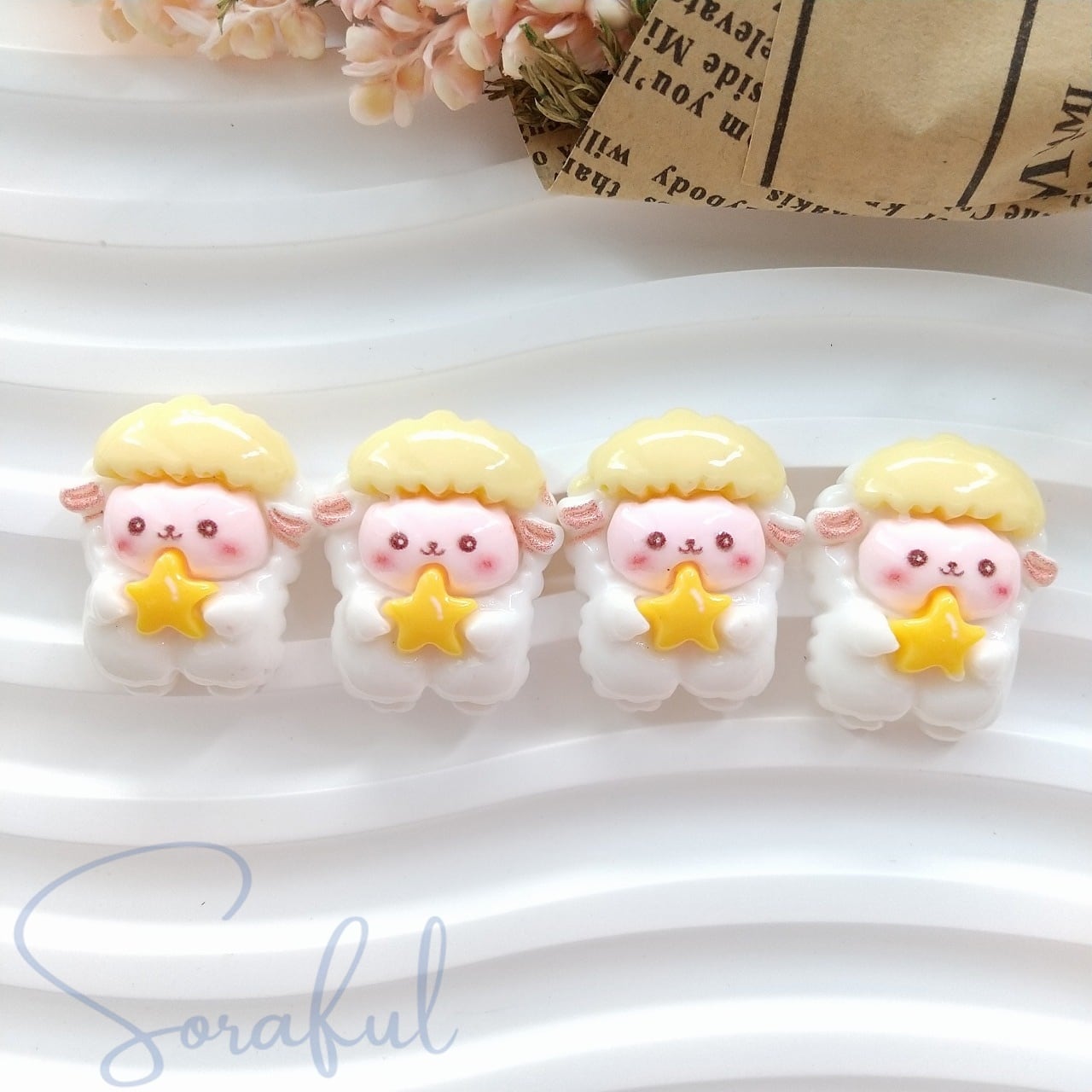 【4個】ひつじとお星さま【デコパーツ】D-0523