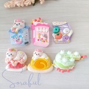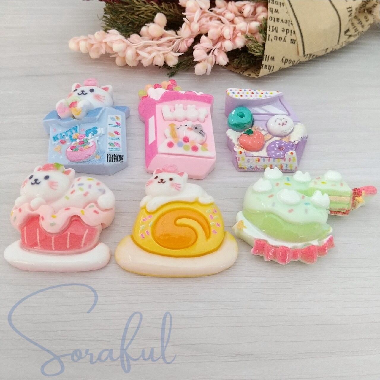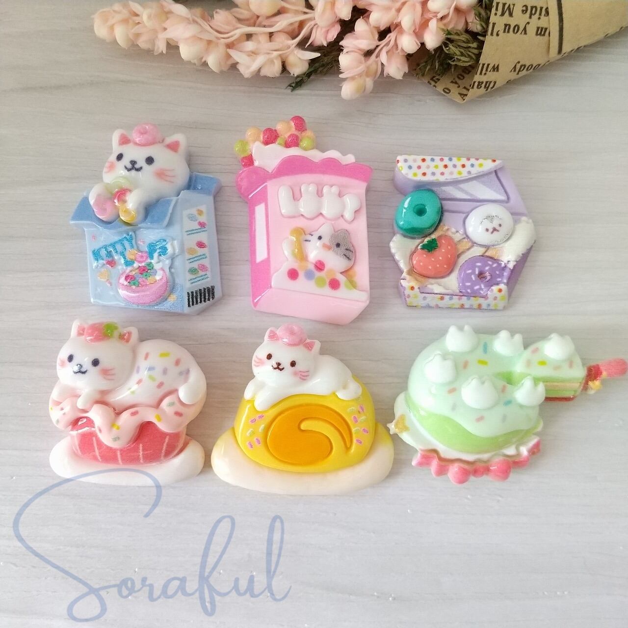 【6種セット】ねこちゃんとおやつタイム【デコパーツ】D-0527
