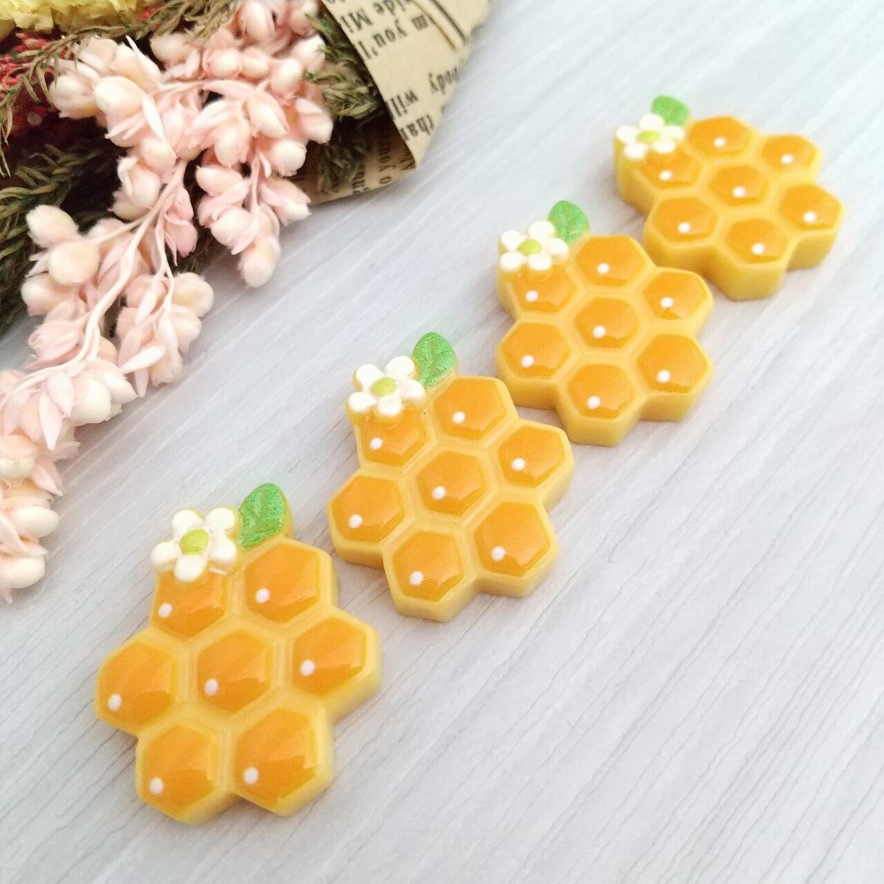 【4個】はちみつ コムハニー 巣蜜 蜂の巣【デコパーツ】D-0530-hive