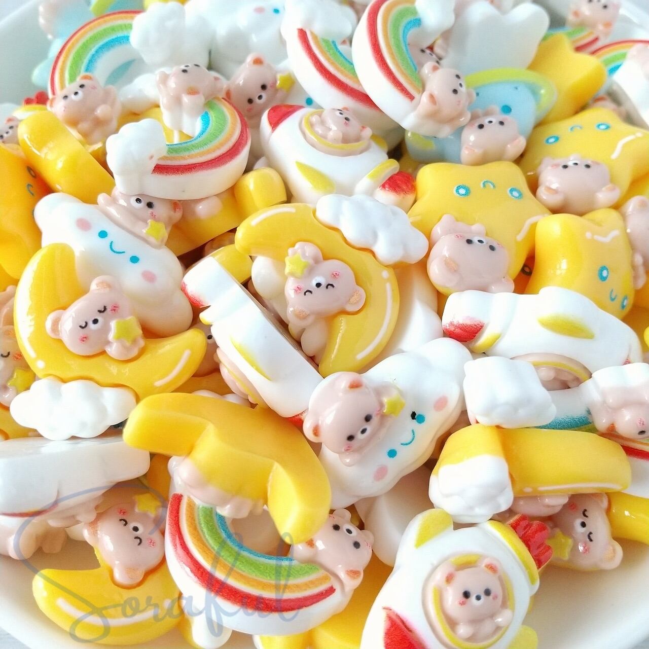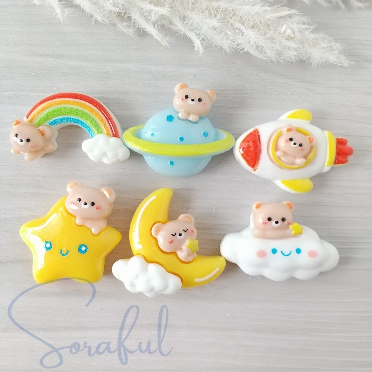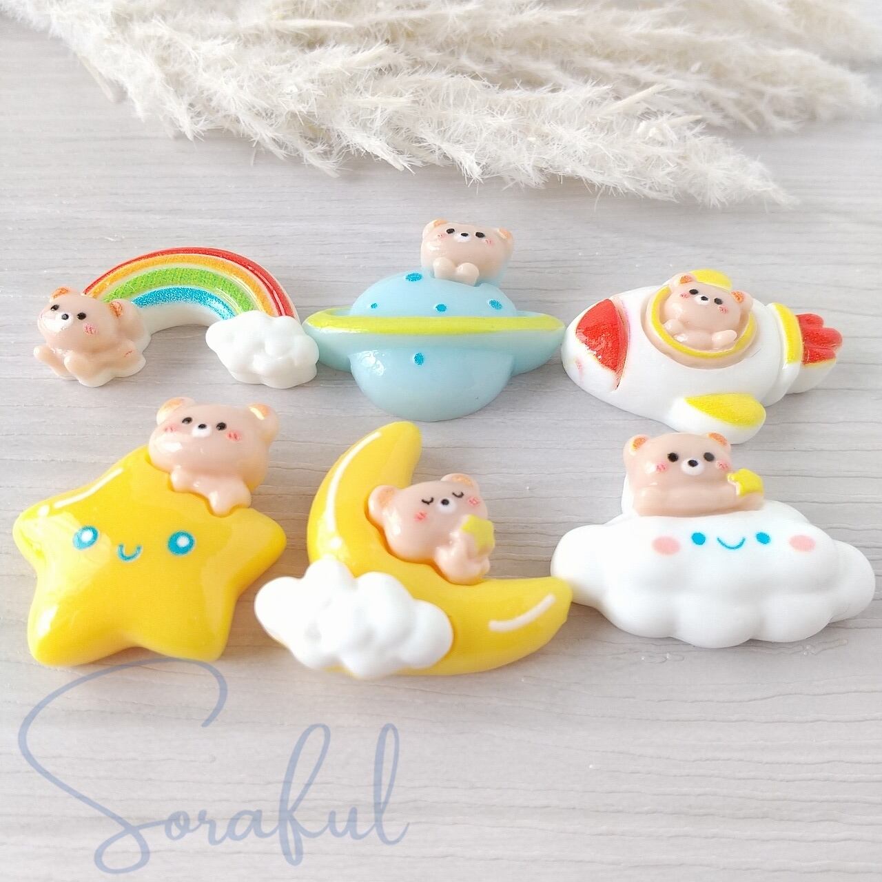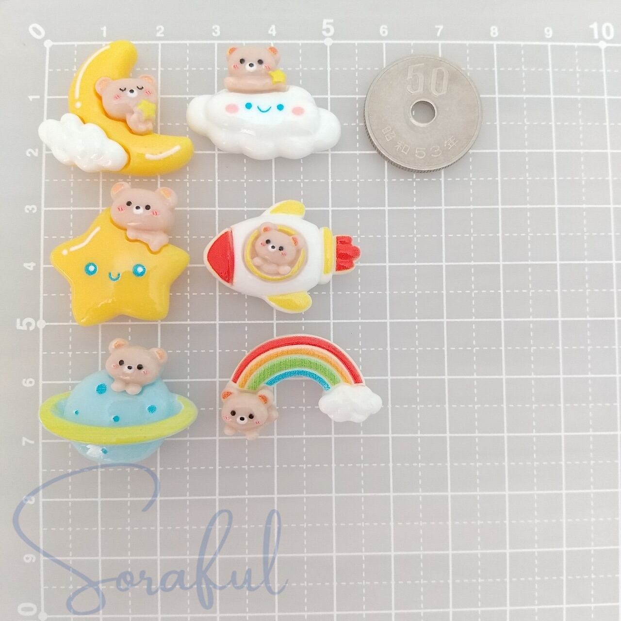 【6種セット】クマちゃんの宇宙旅行 星 雲 月 虹【デコパーツ】D-0528