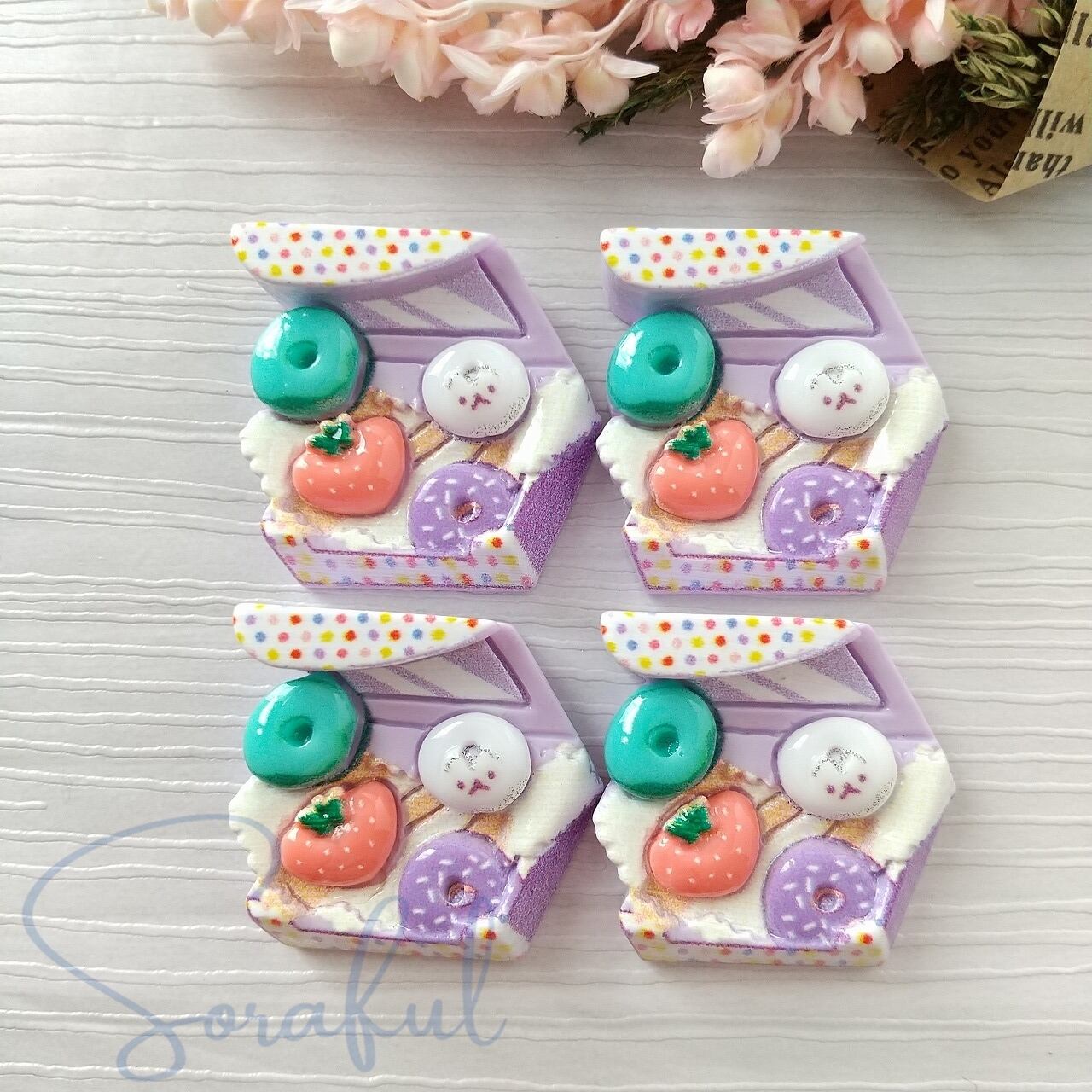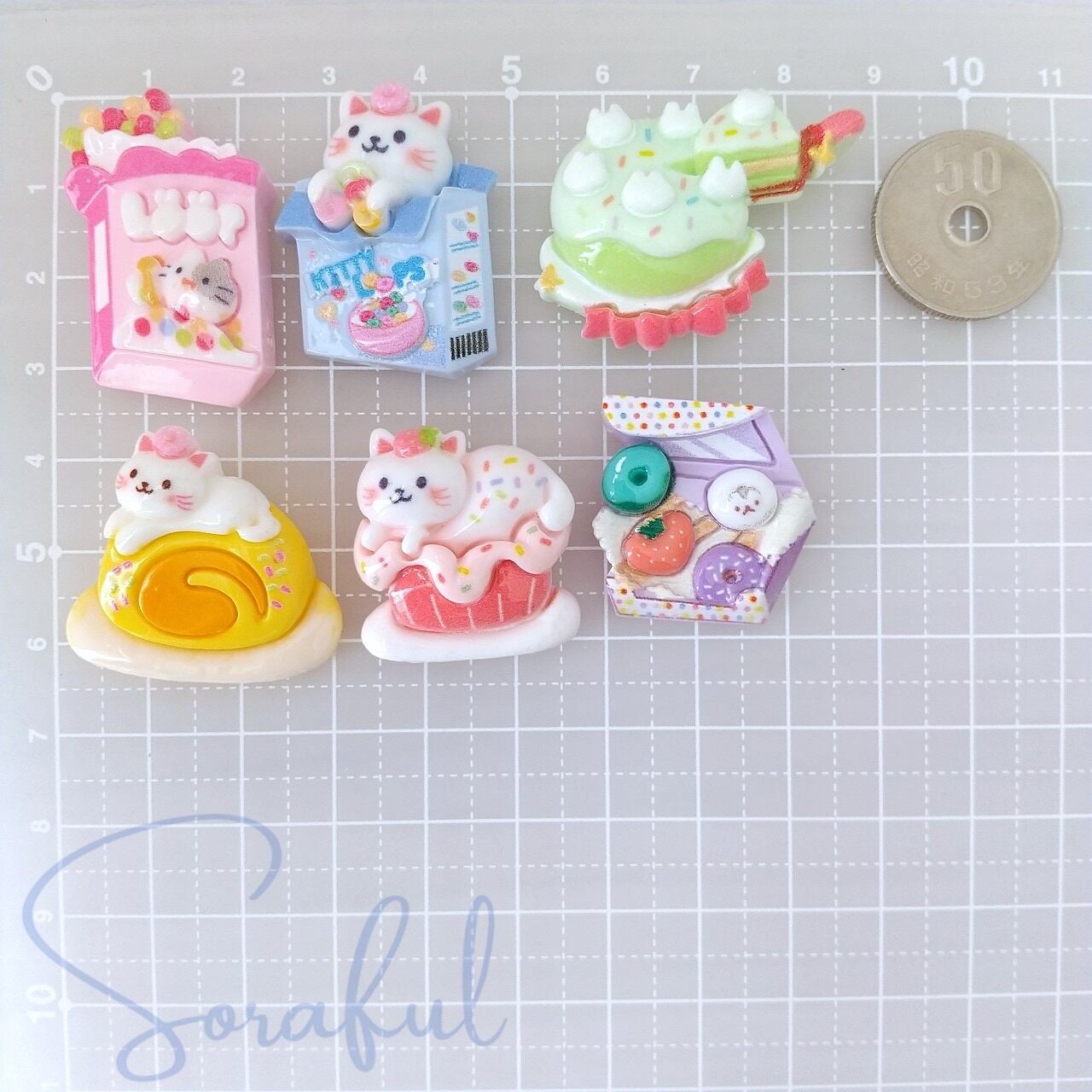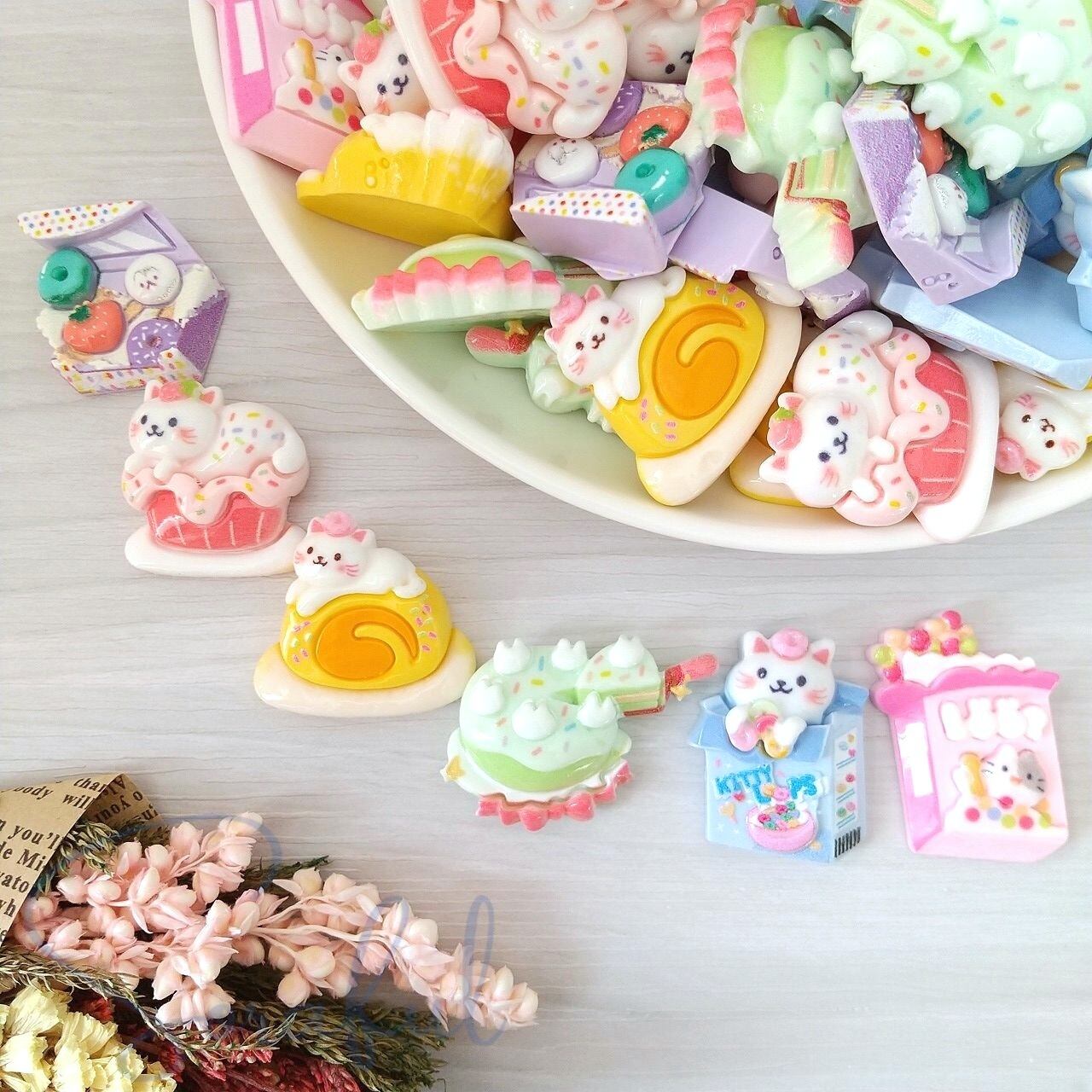 【4個】ねこちゃんとおやつタイム【デコパーツ】D-0527-4
