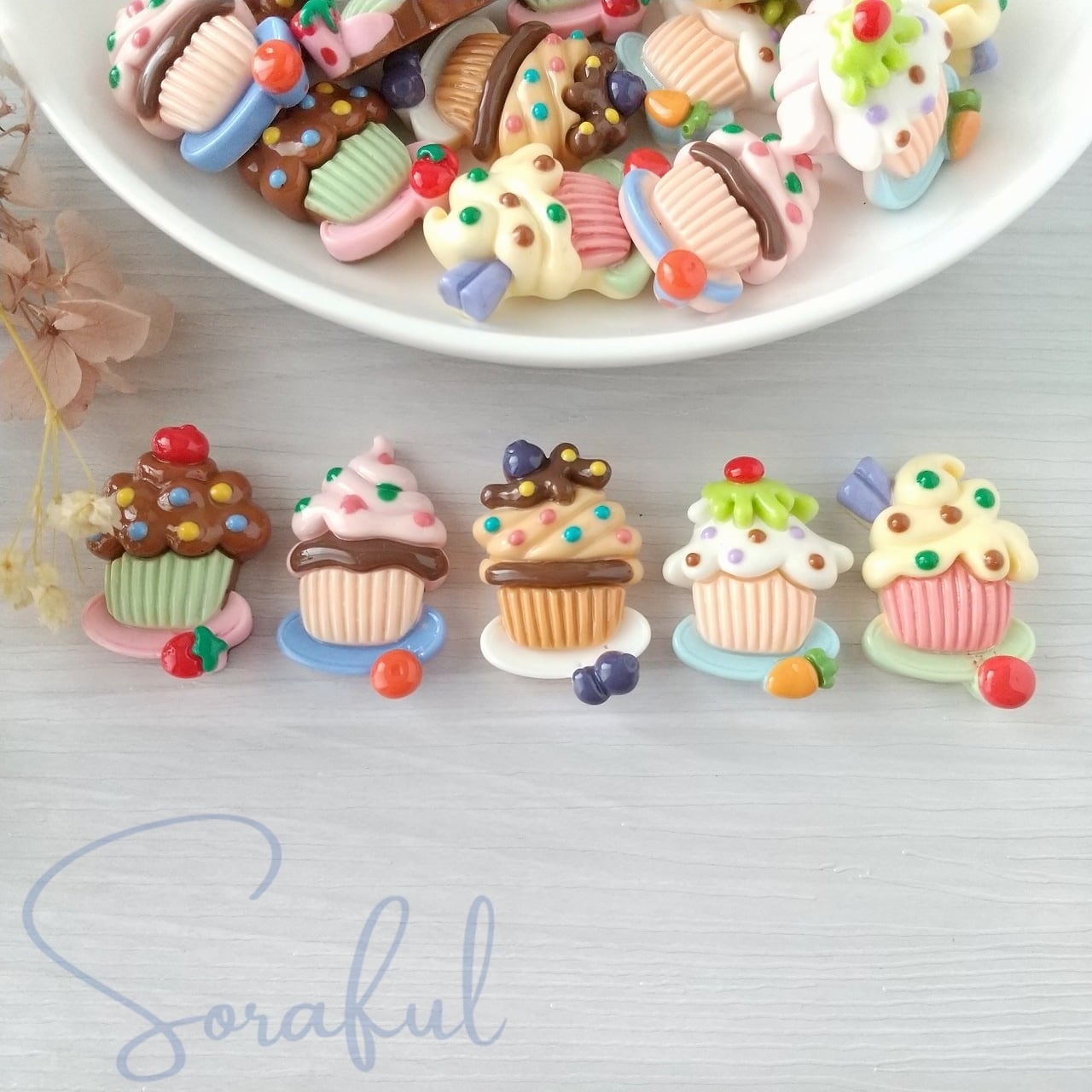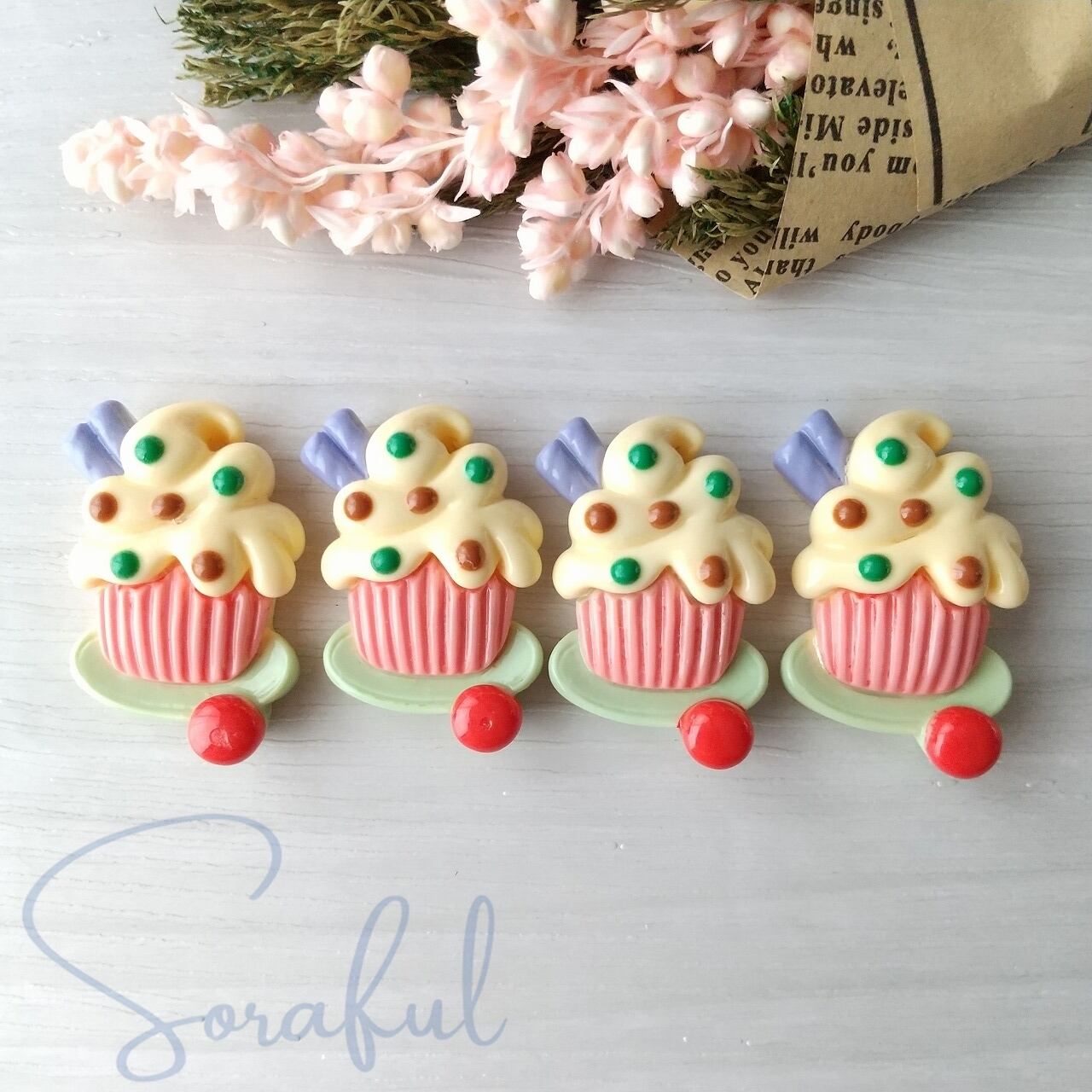 デコパーツ フルーツ&野菜カップケーキ 4個 D-0067-4