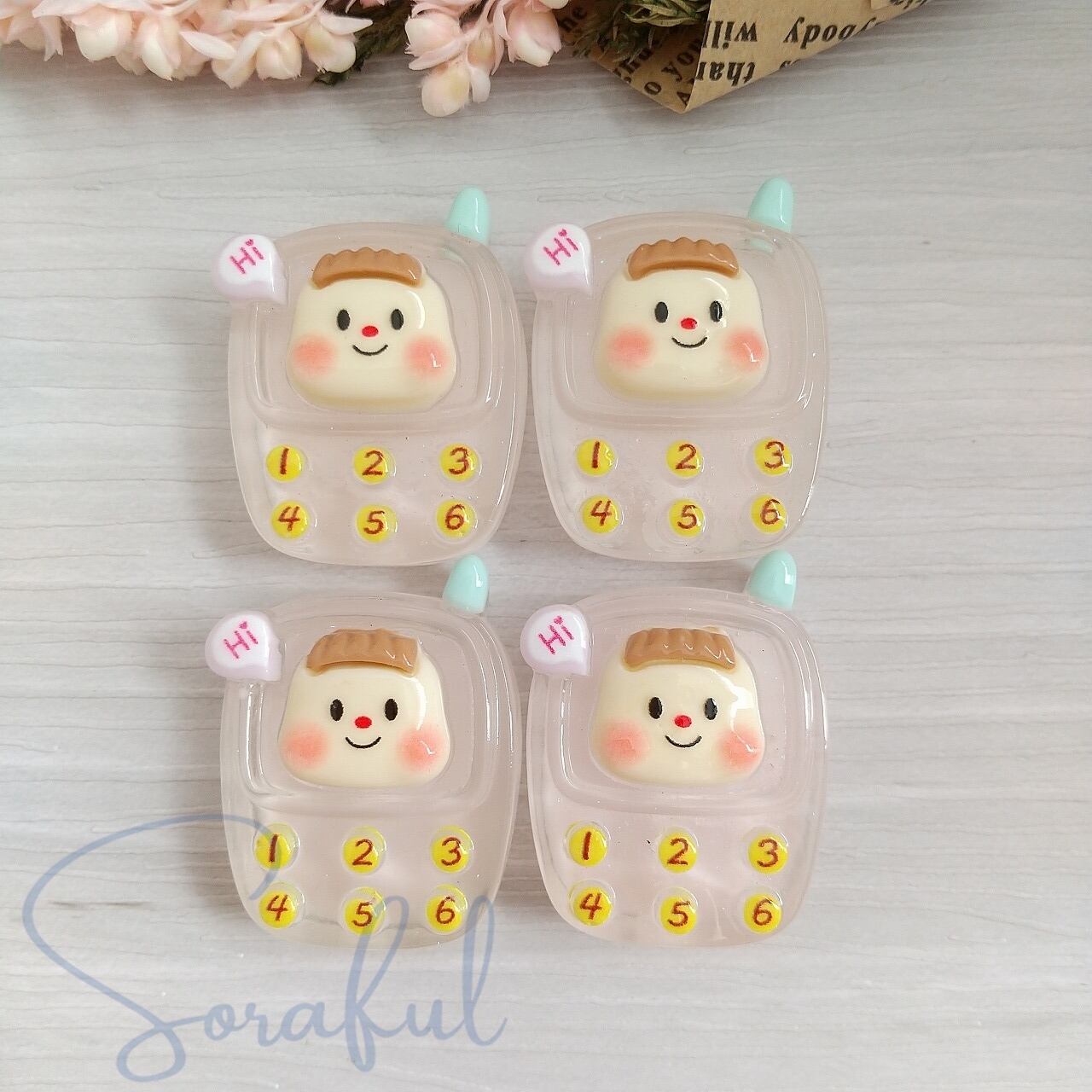 【4個】携帯電話 ガラケー クリアカラー フェイス【デコパーツ】D-0549-4