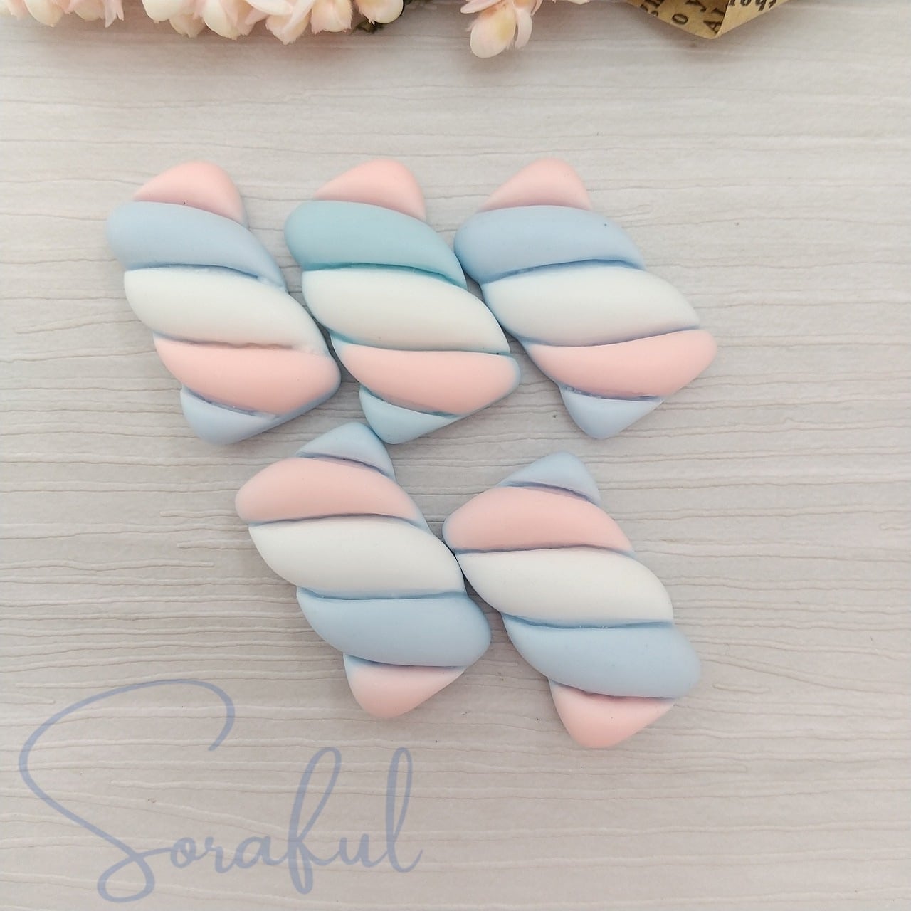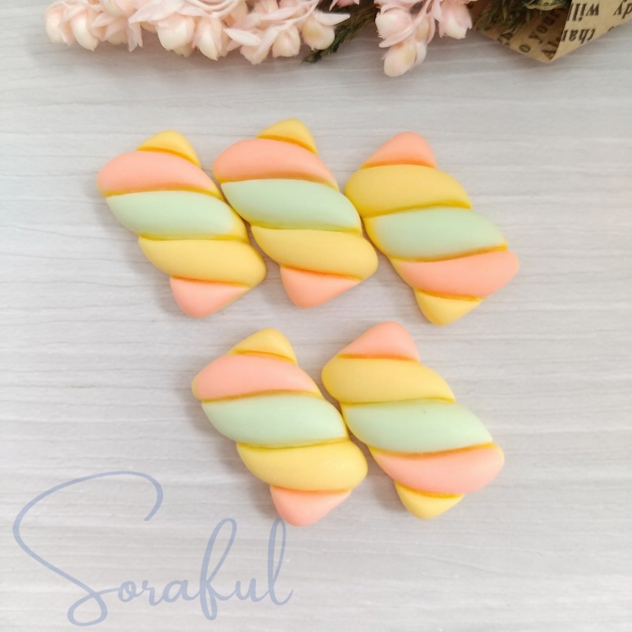 【5個】3色ツイストマシュマロ【デコパーツ】D-0560