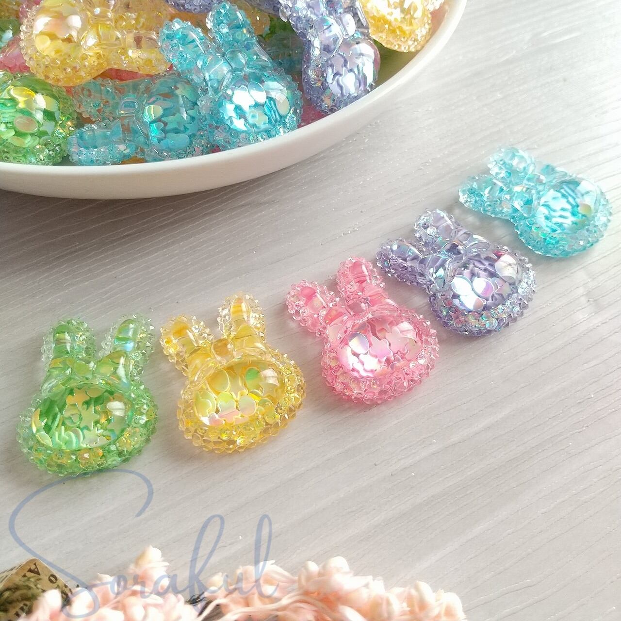 【5色セット】クリアうさぎ キラキラ スパンコール クリスタル【デコパーツ】D-0551