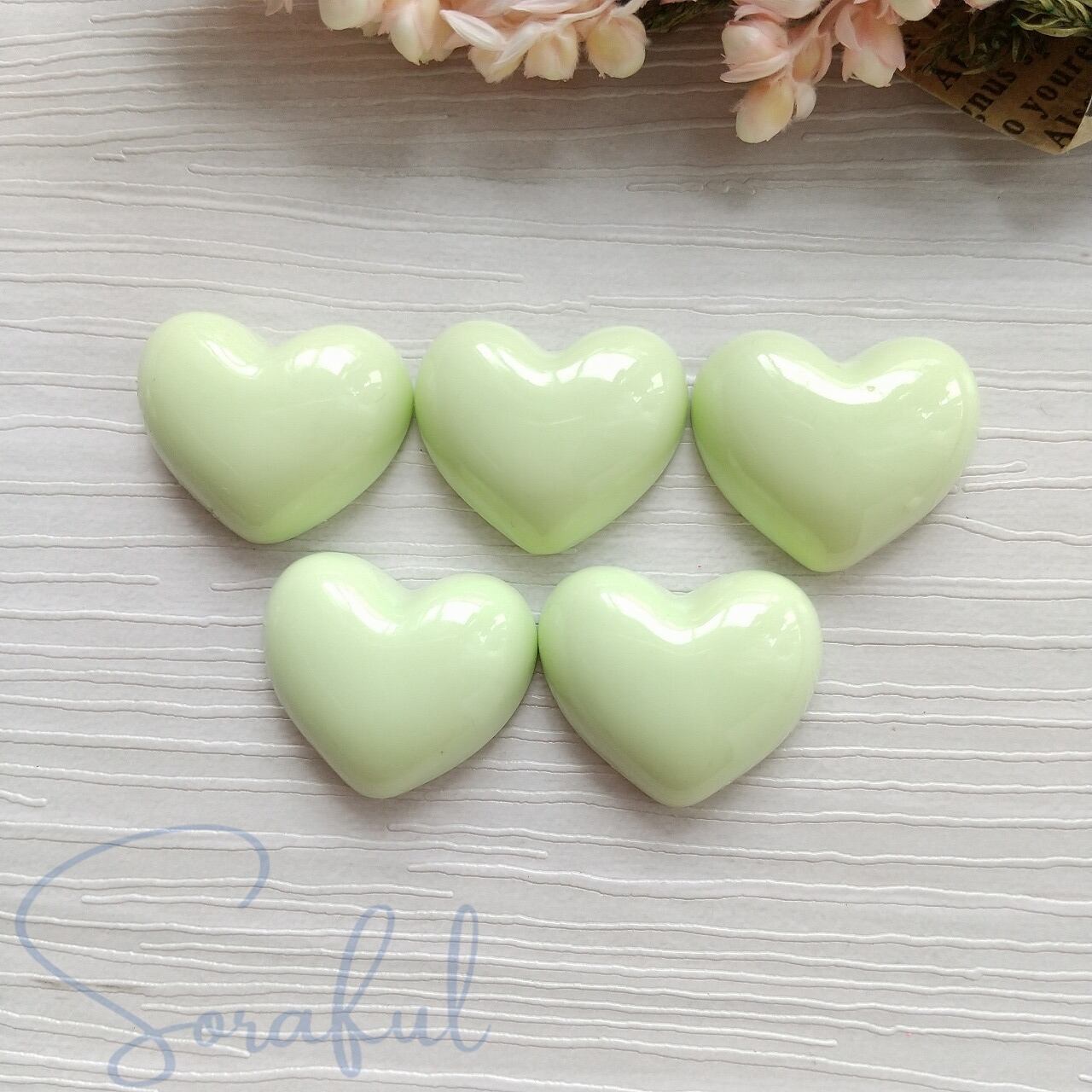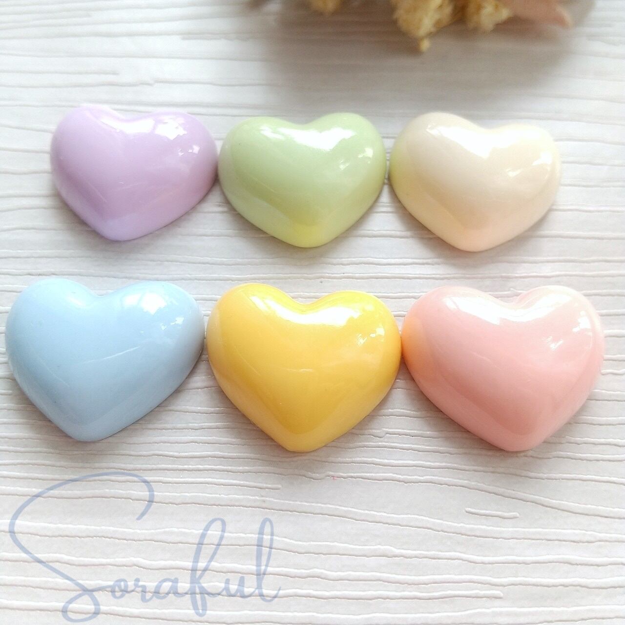【5個】ミルキーハート パステルカラー ツヤ【デコパーツ】D-0559