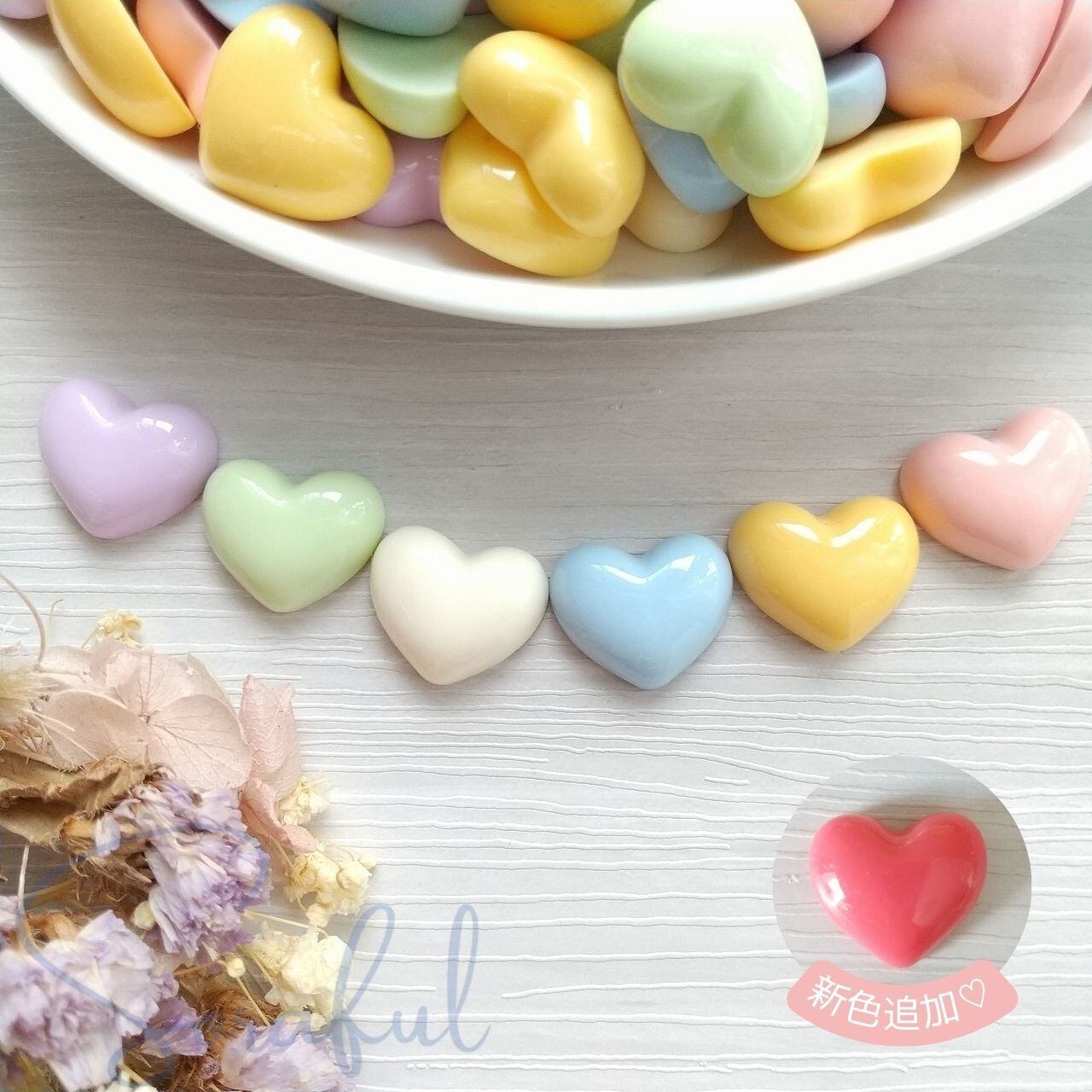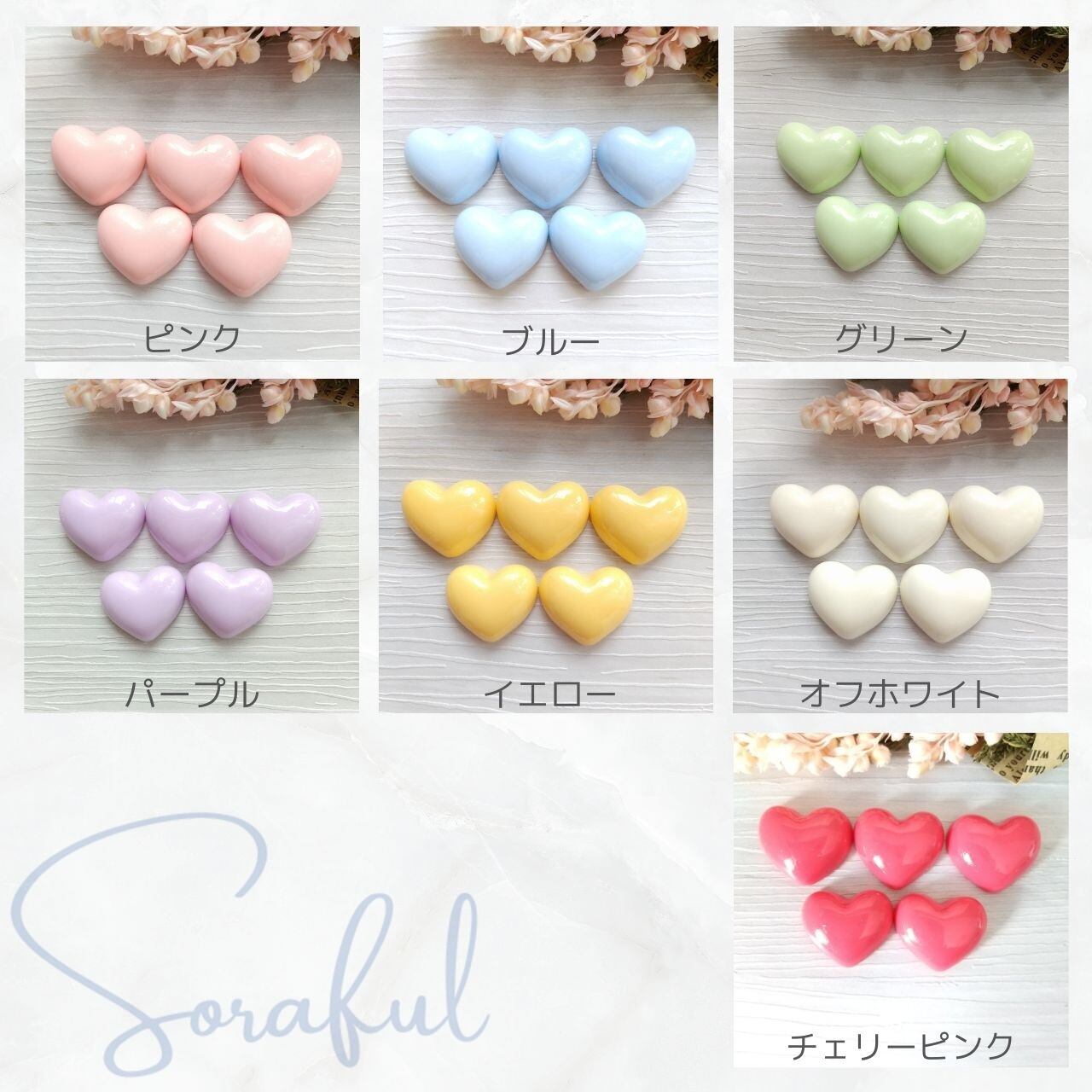 パステルカラーのハート ツヤタイプ 5個セット