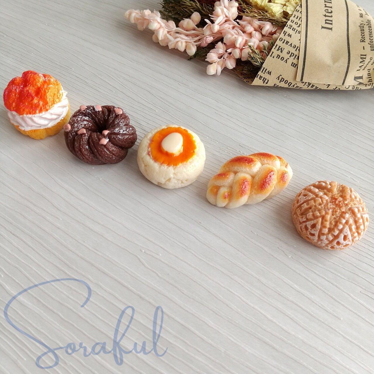 【5種セット】リアルなパンのセット ドーナツ シュークリーム マフィン ブレッド【デコパーツ】D-0599