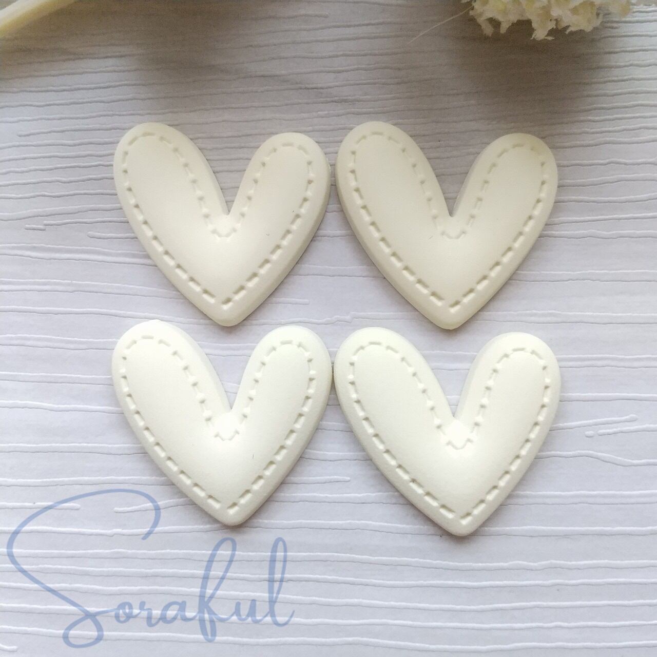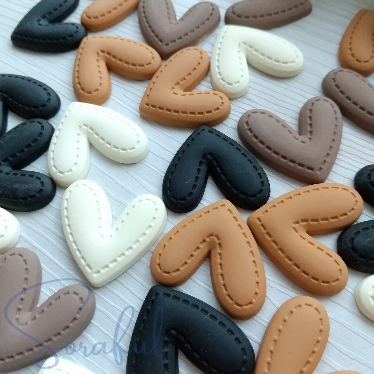 【4個】ブラウン系ステッチハート【デコパーツ】D-0584