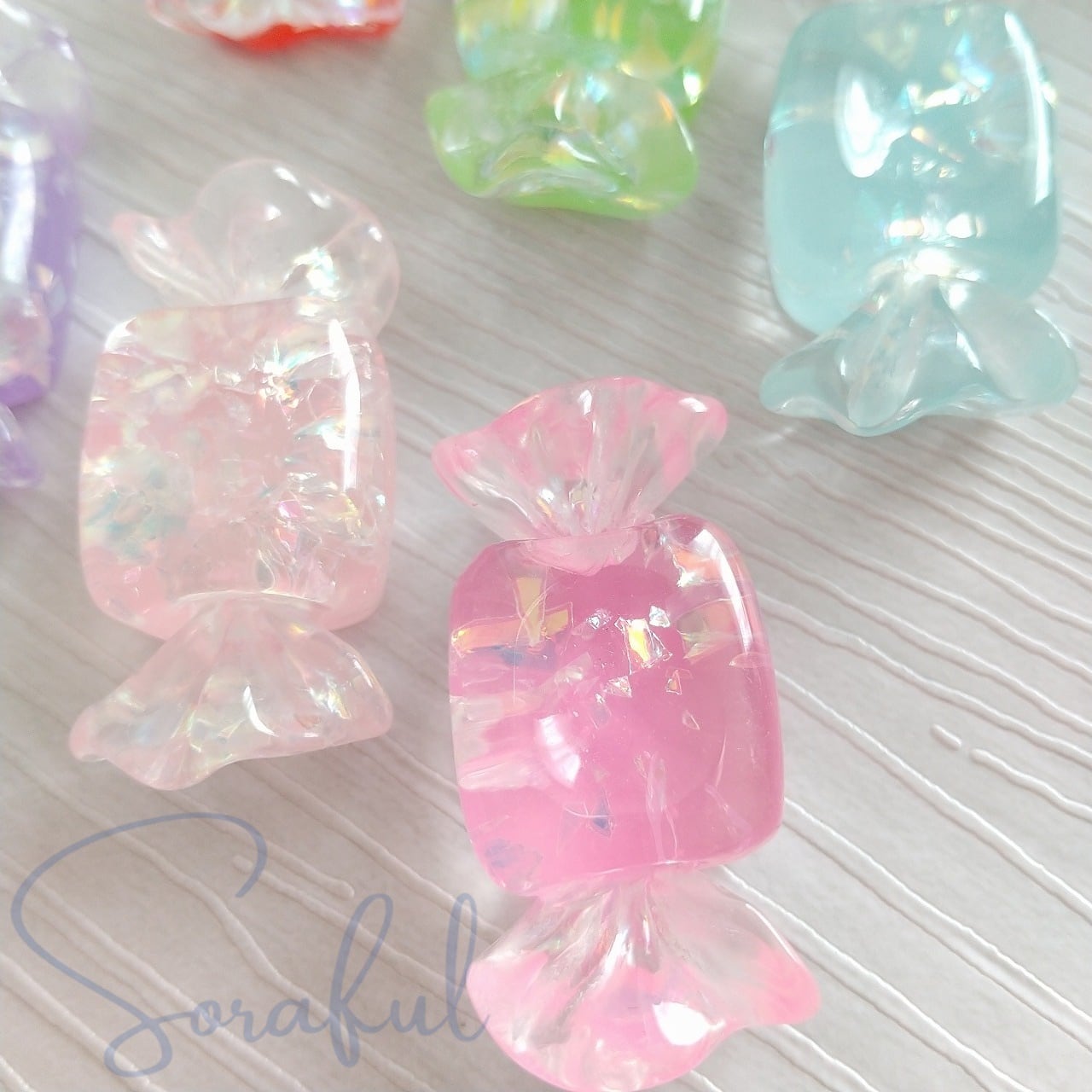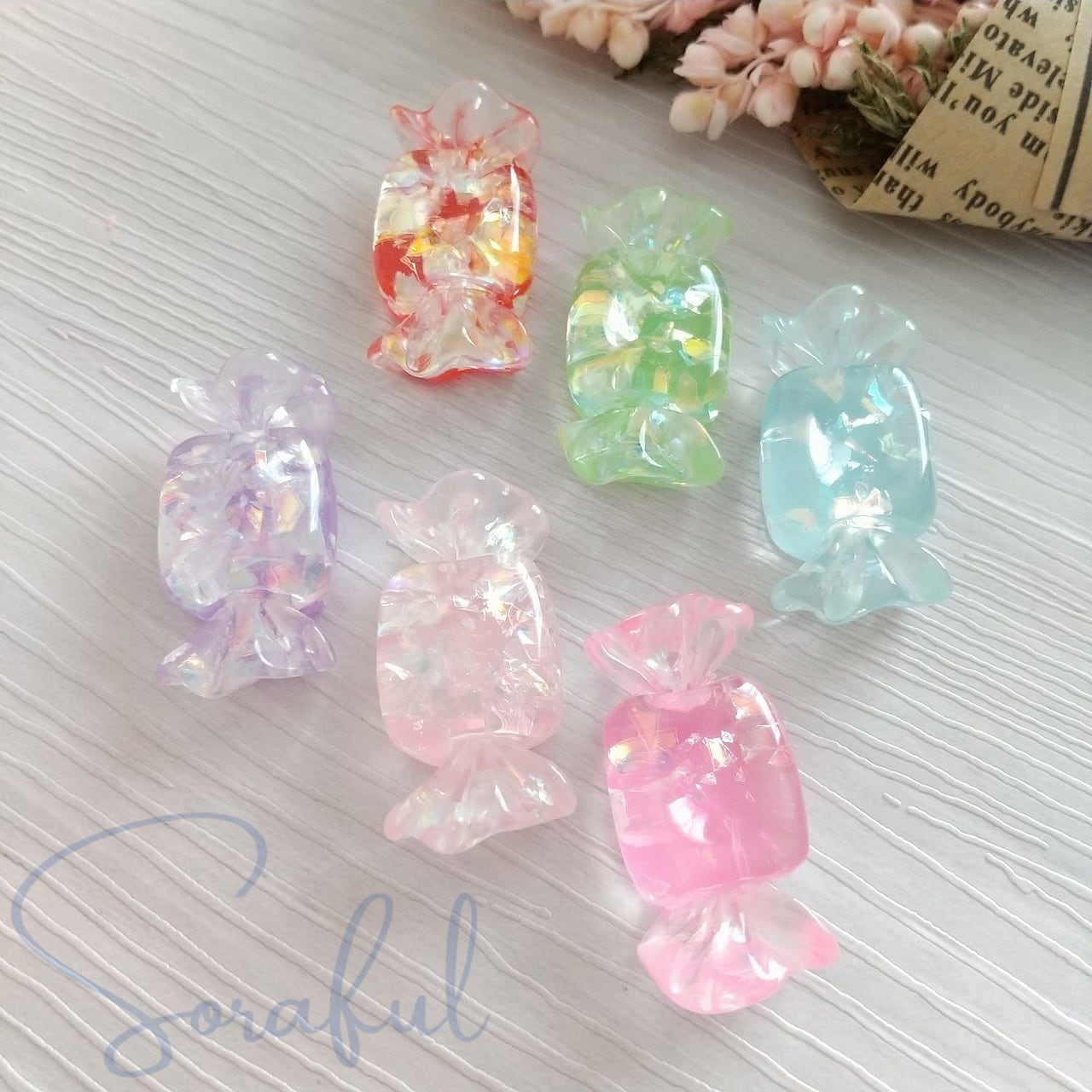 【6色セット】キラキラ ホロ クリアキャンディー【デコパーツ】D-0576-ALL