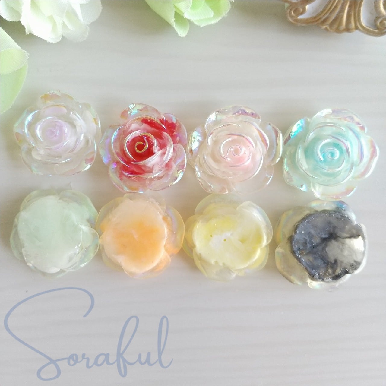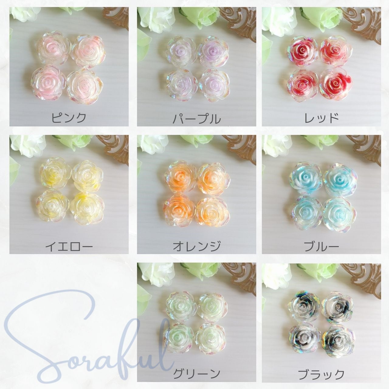 薔薇 バラ カボション クリア 透明 22mm 4個セット
