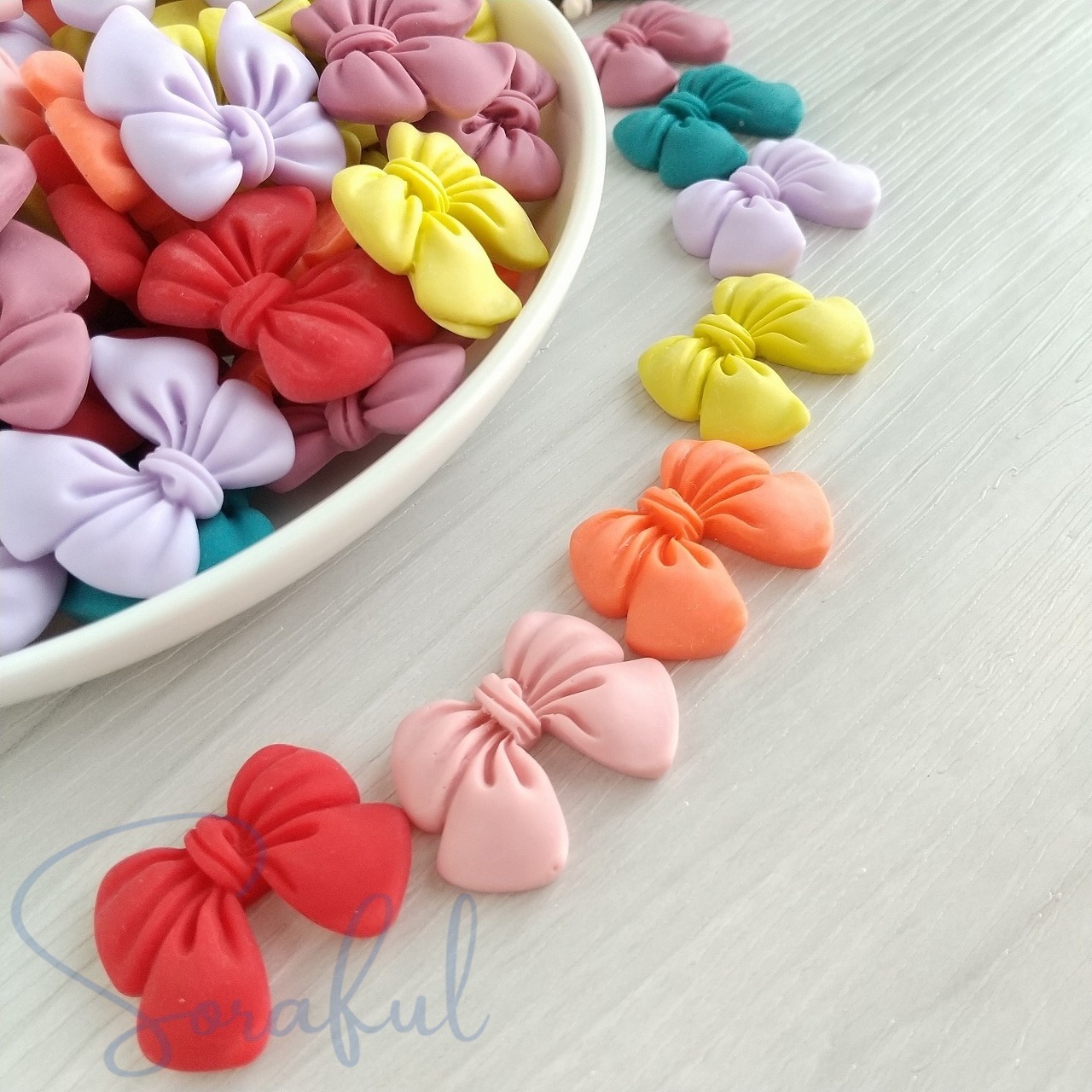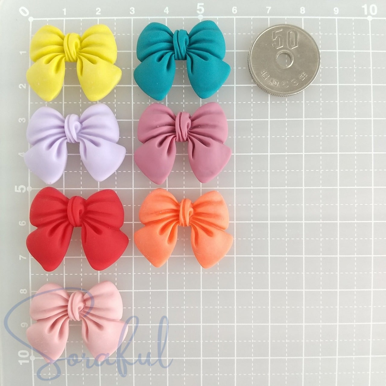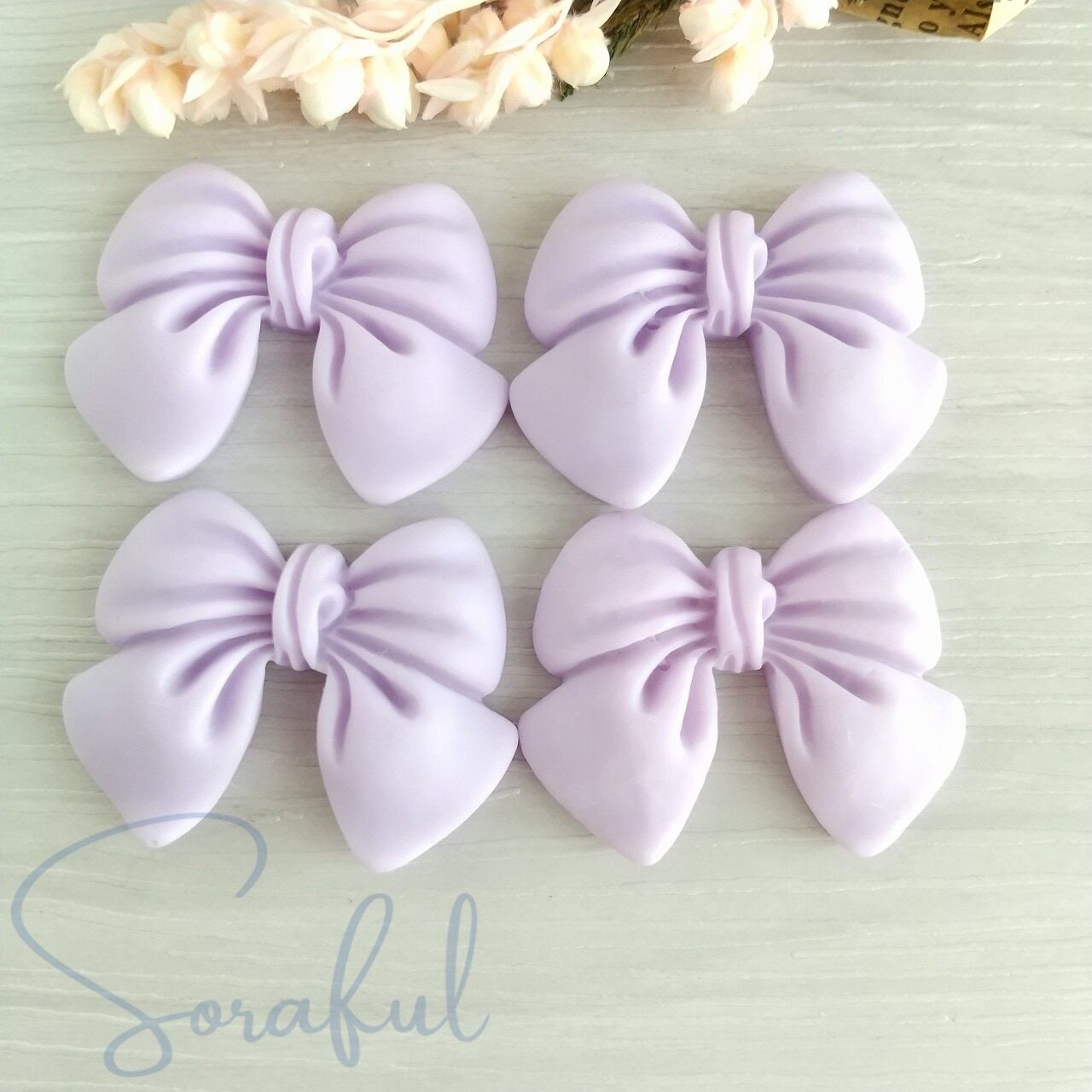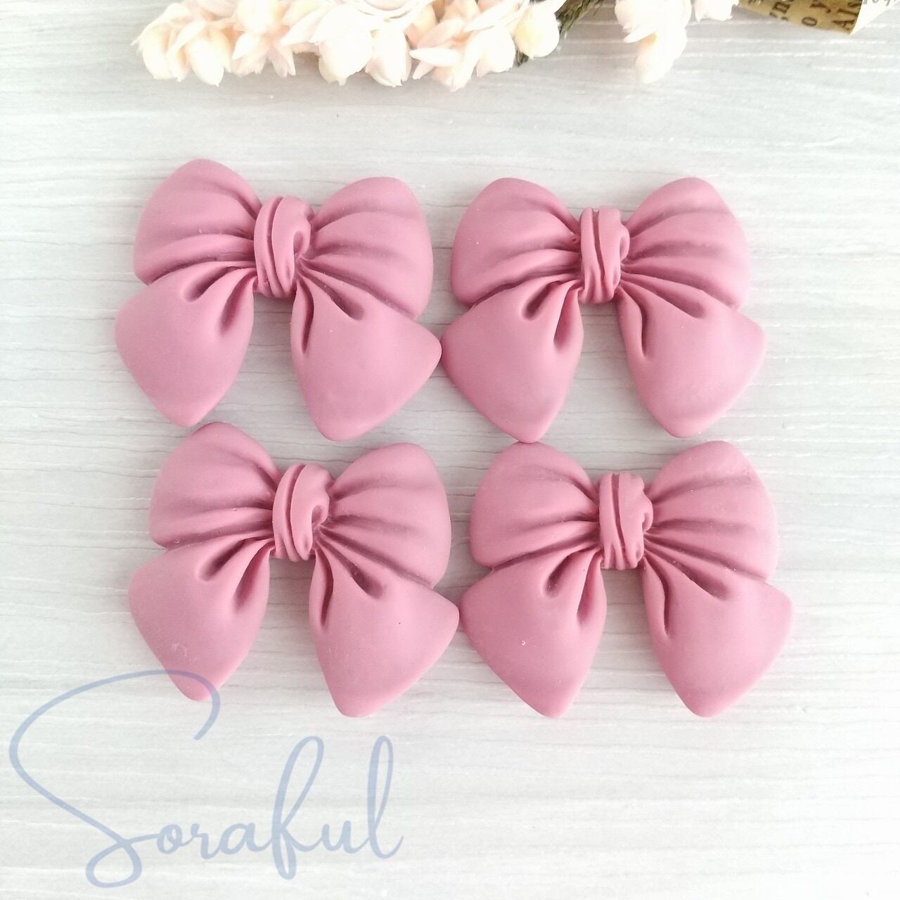 【4個】リボン くすみカラー オールドファッション Mサイズ【デコパーツ】D-0610