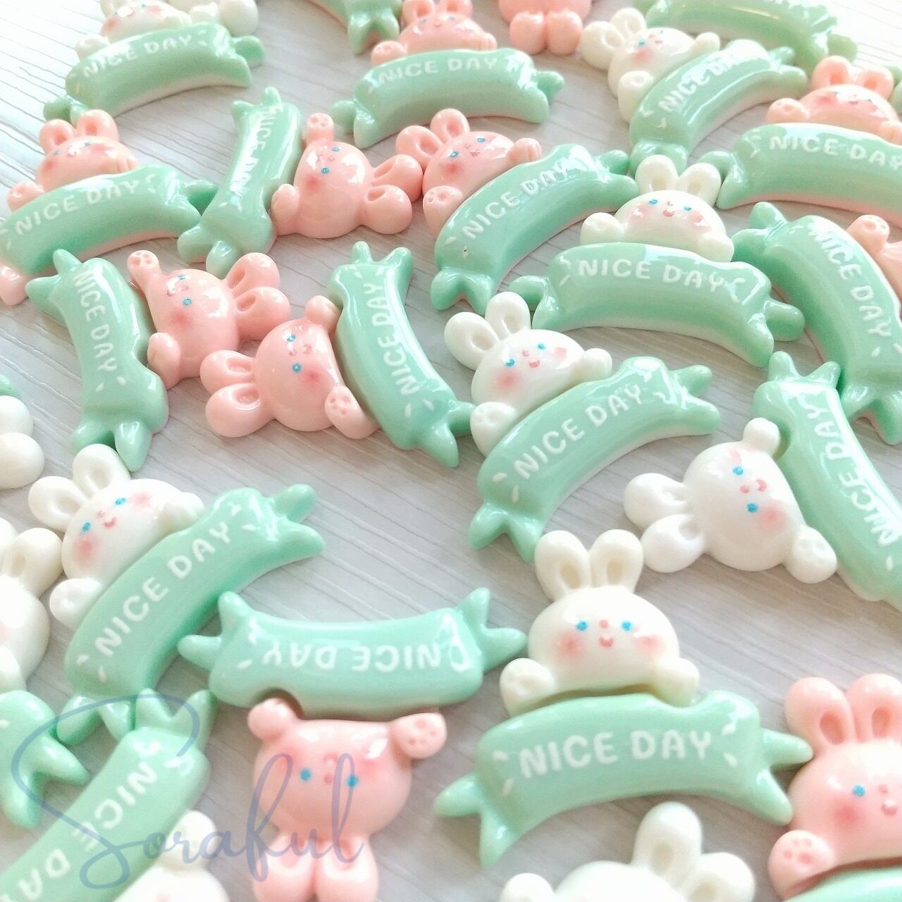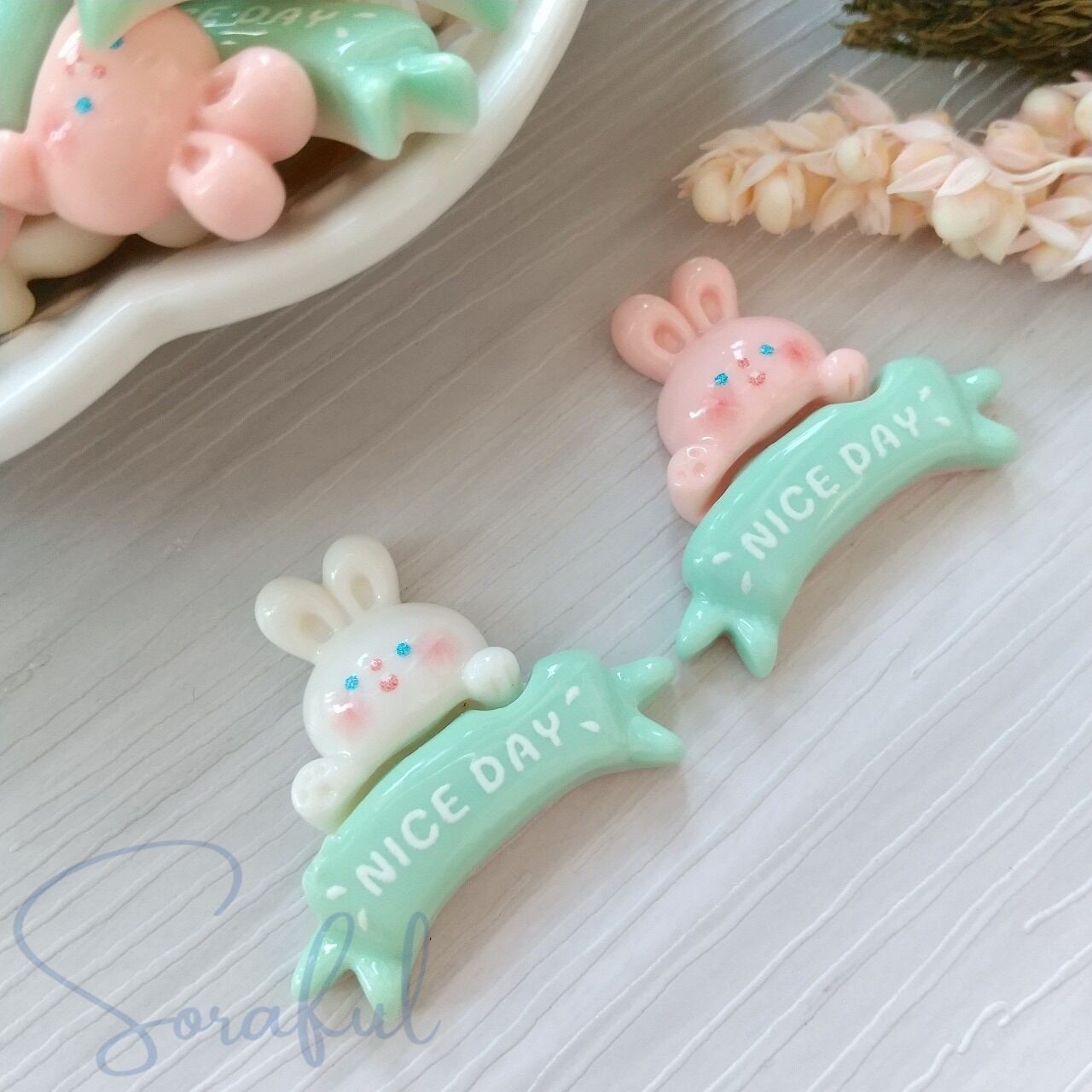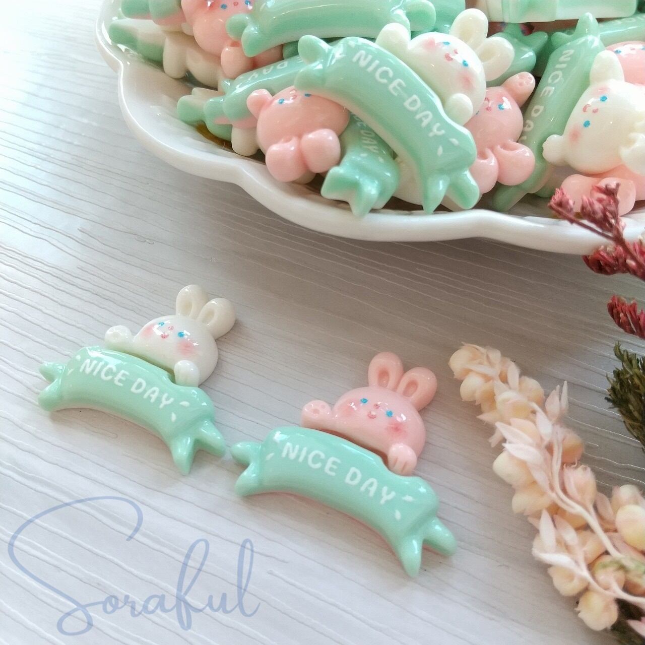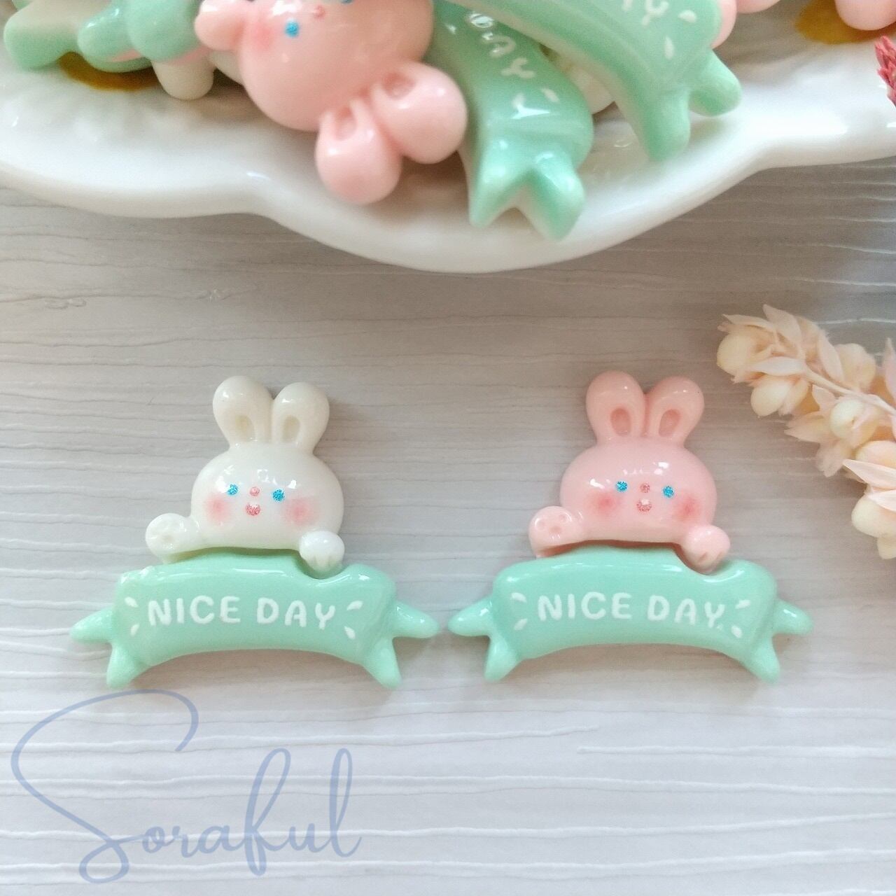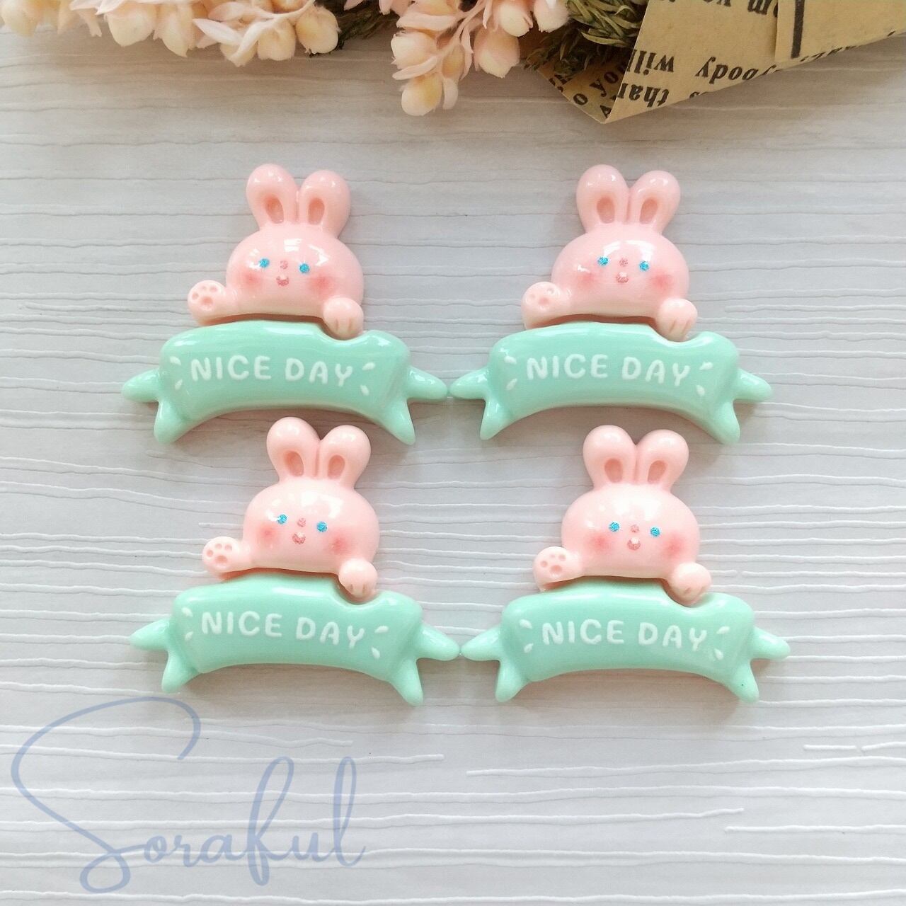 【4個】NICE DAYリボン うさちゃん【デコパーツ】D-0624